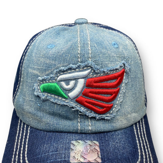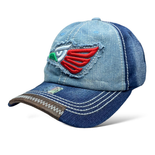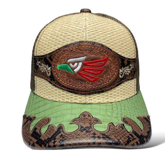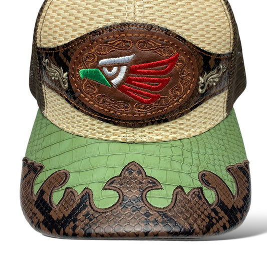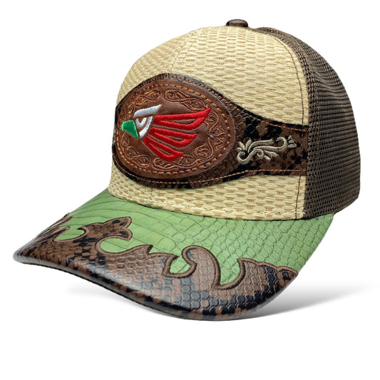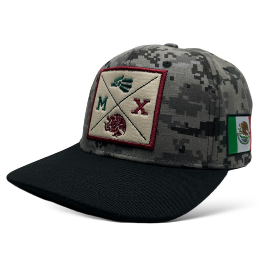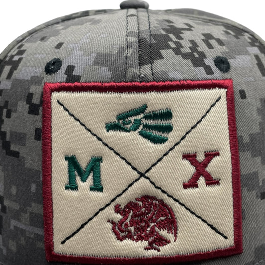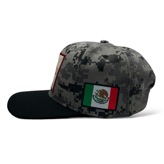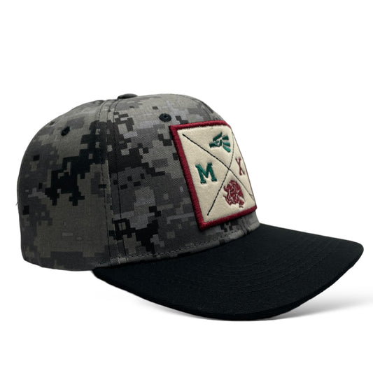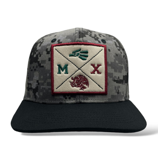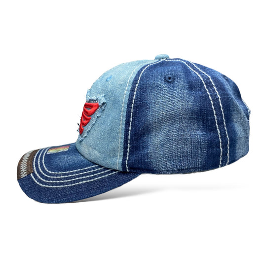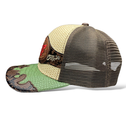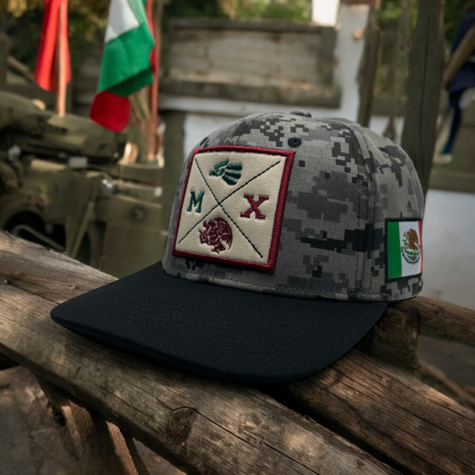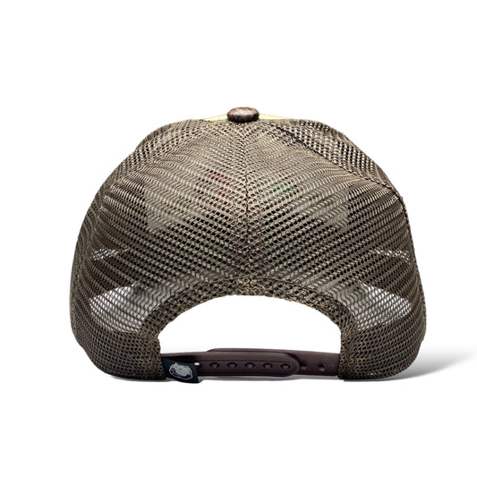 Black trucker hat with USA flag patch, snapback closure, and mesh back.