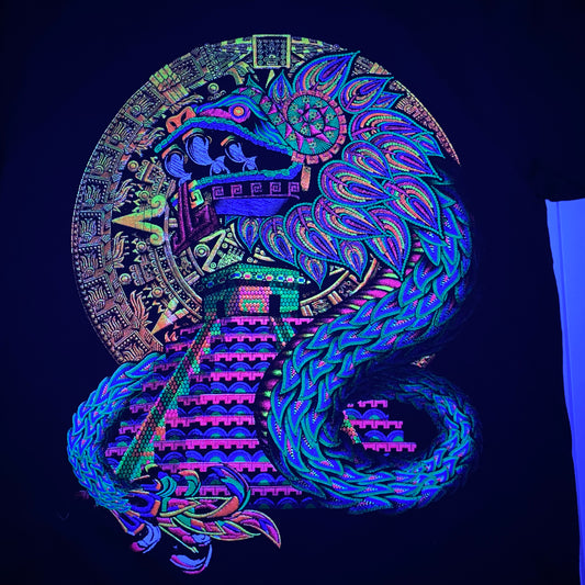 Quetzalcóatl Aztec Snake T Shirt Double Print Glow in Neon and Black light