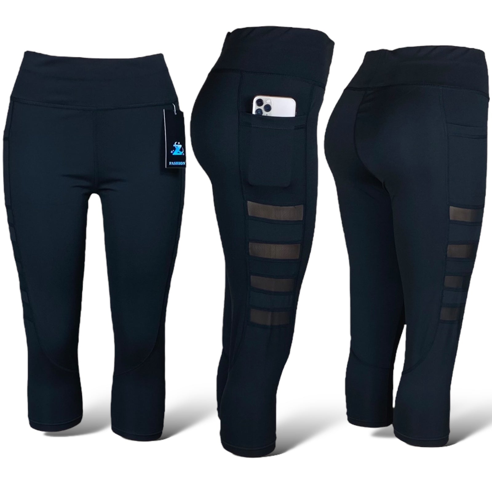 • women mesh patchwork Capri Leggings High Waist Active Wear