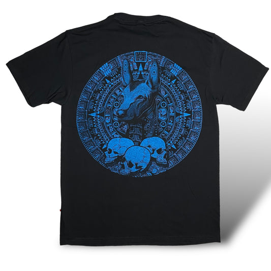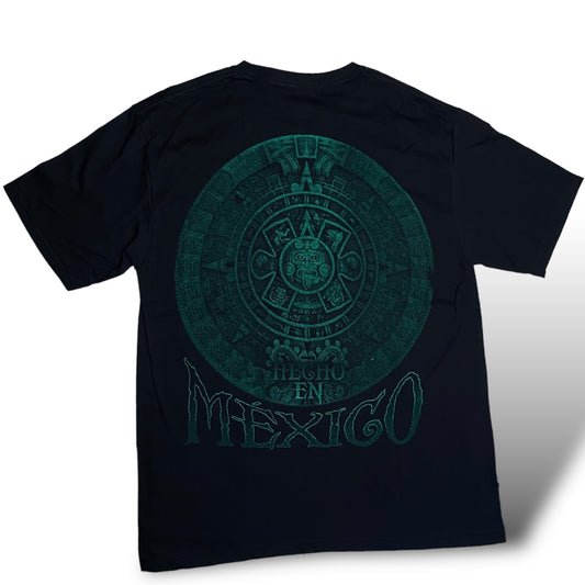 • Black T-Shirt with Aztec Calendar Design that Glows Under Neon or Black light