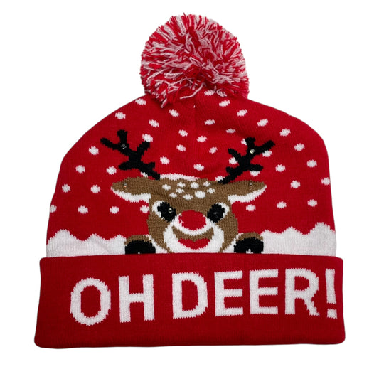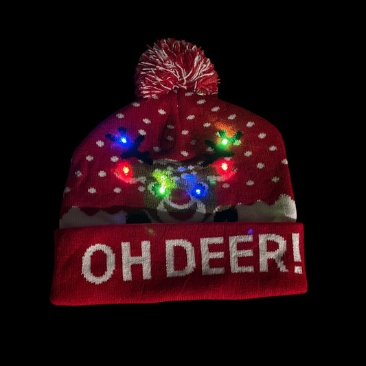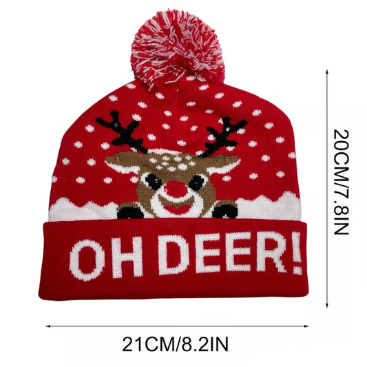 LED Christmas Beanie Knit Hat Light Up Tree Xmas Snowman Knitted Cap Adult Kids