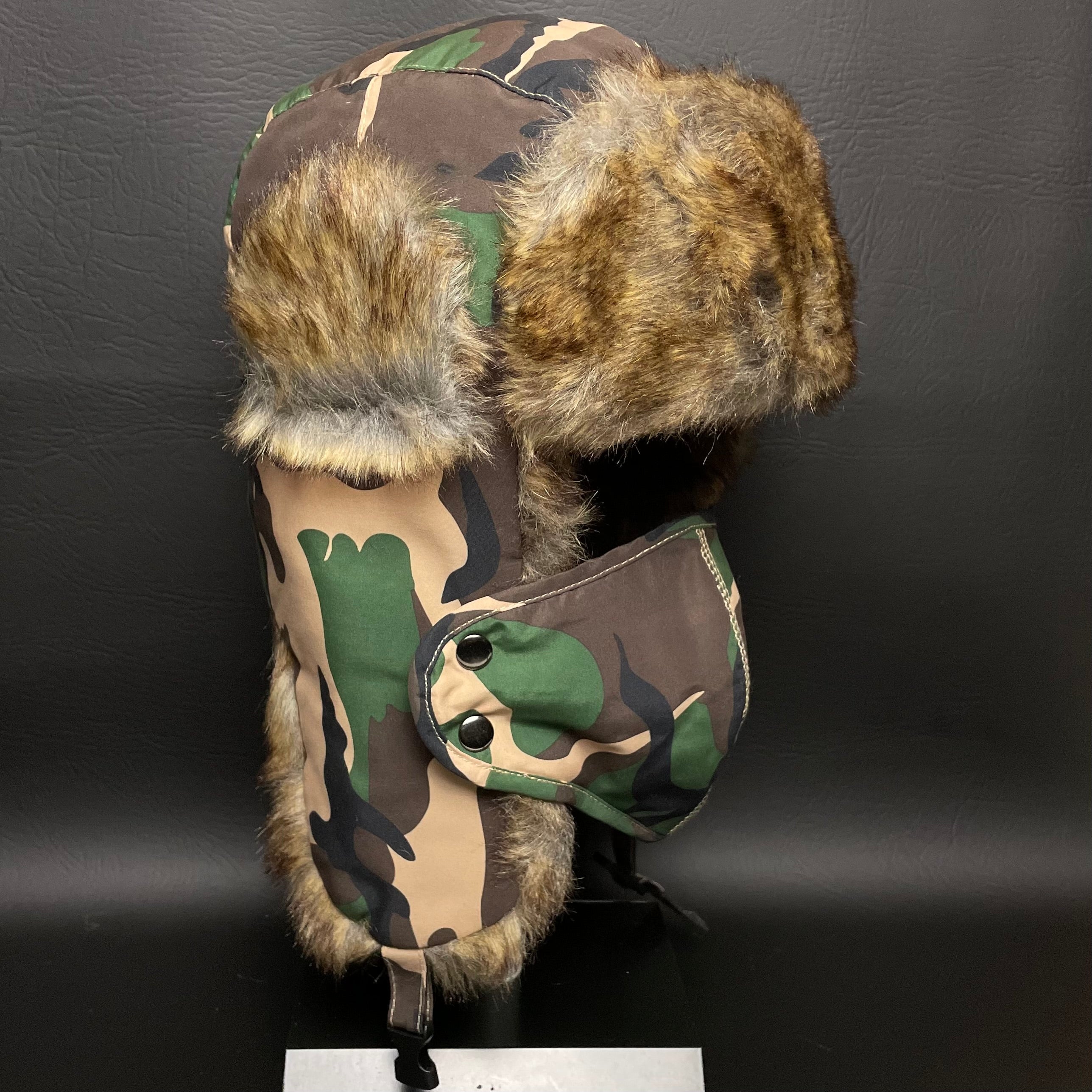 • Thermal Russian Aviator Trapper Camouflage Winter Hat for Outdoor Activities