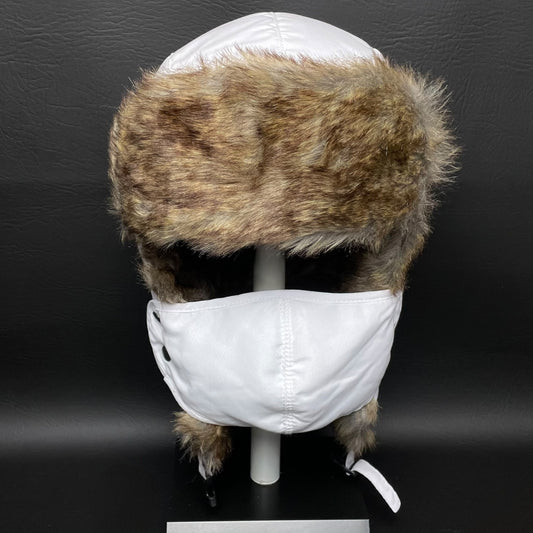 • Winter Fur Ear Flap Hat Trapper Chic Russian Trooper Ski Cap Face Mask