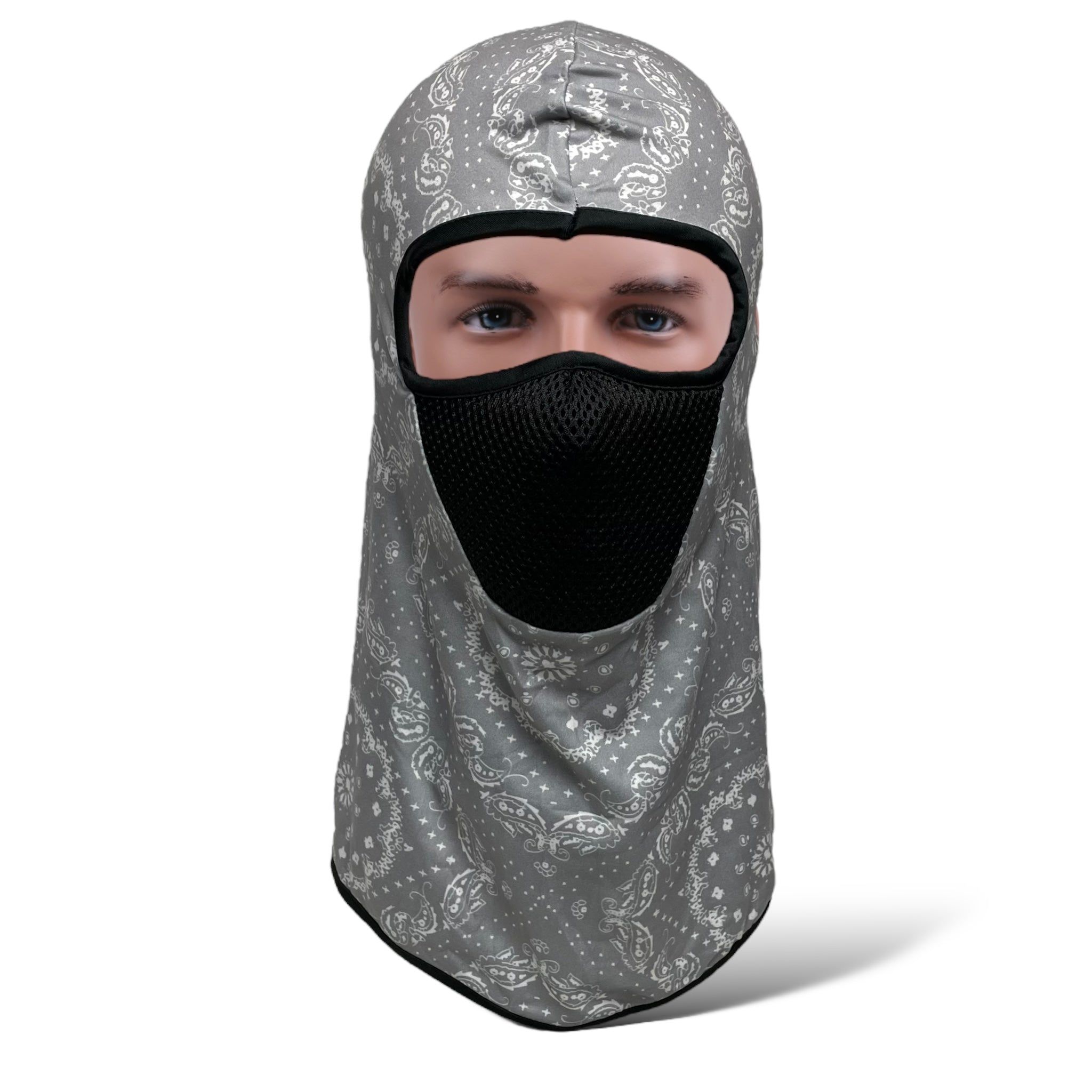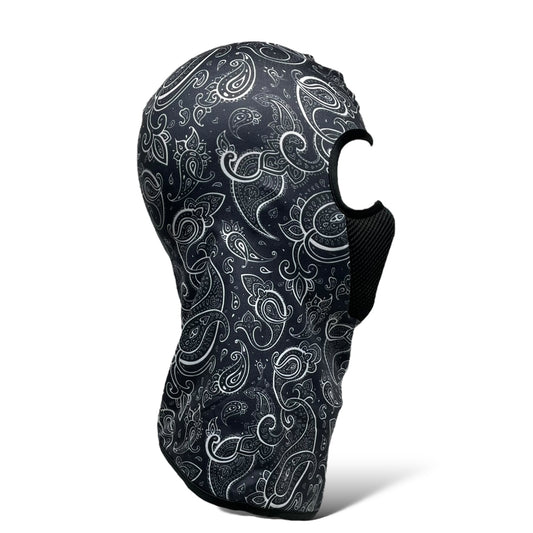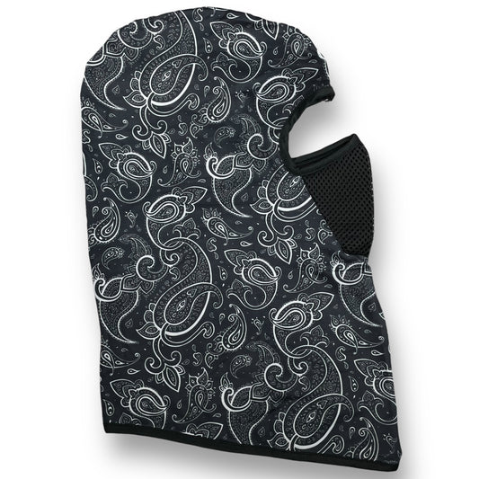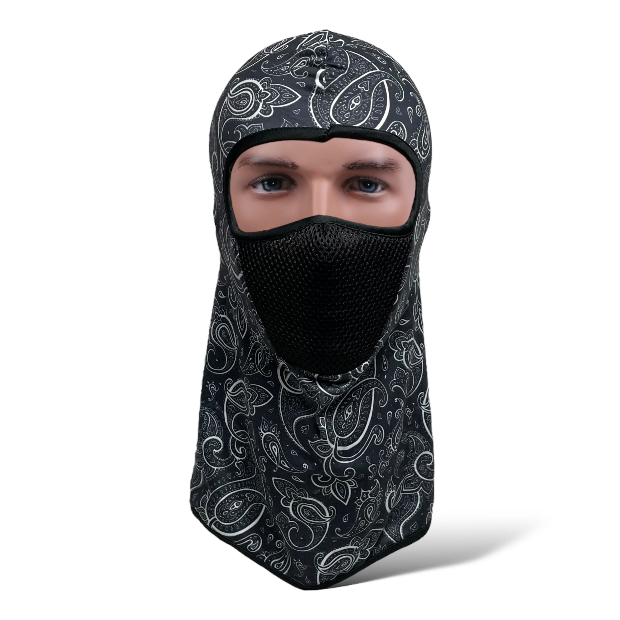 • Distressed Knit Full-Face Balaclava Ski Mask - Black/White Winter Hip-Hop Headgear