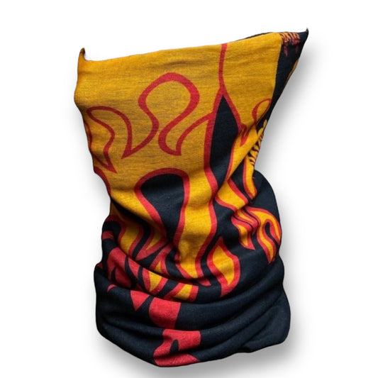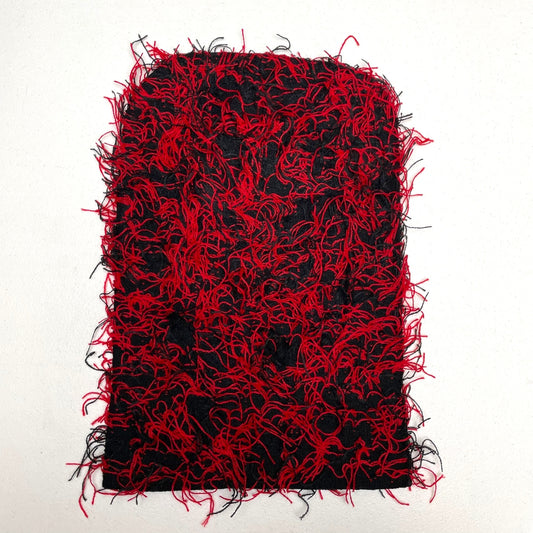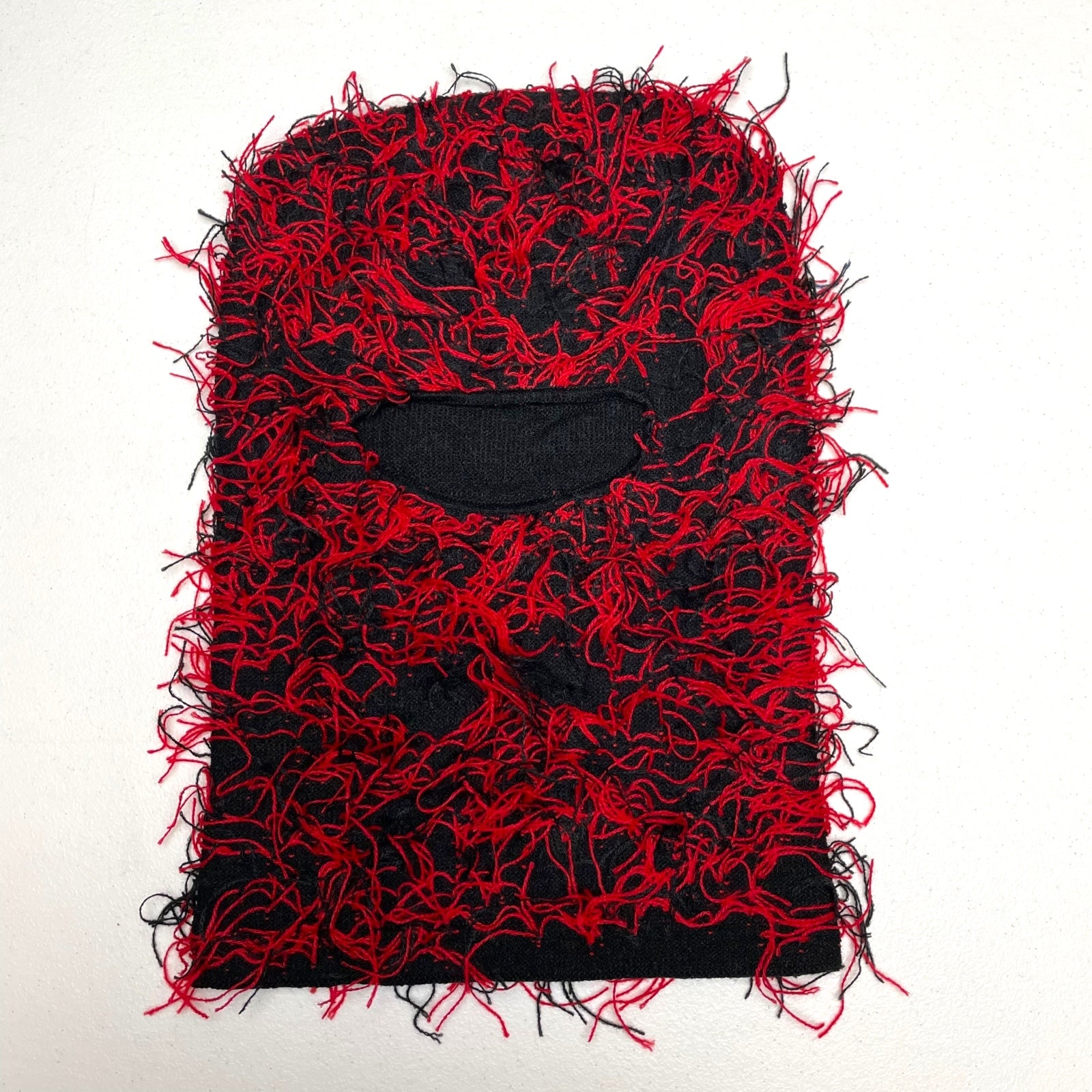 • Distressed Knit Full-Face Balaclava Ski Mask - Black/Red Winter Hip-Hop Headgear