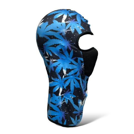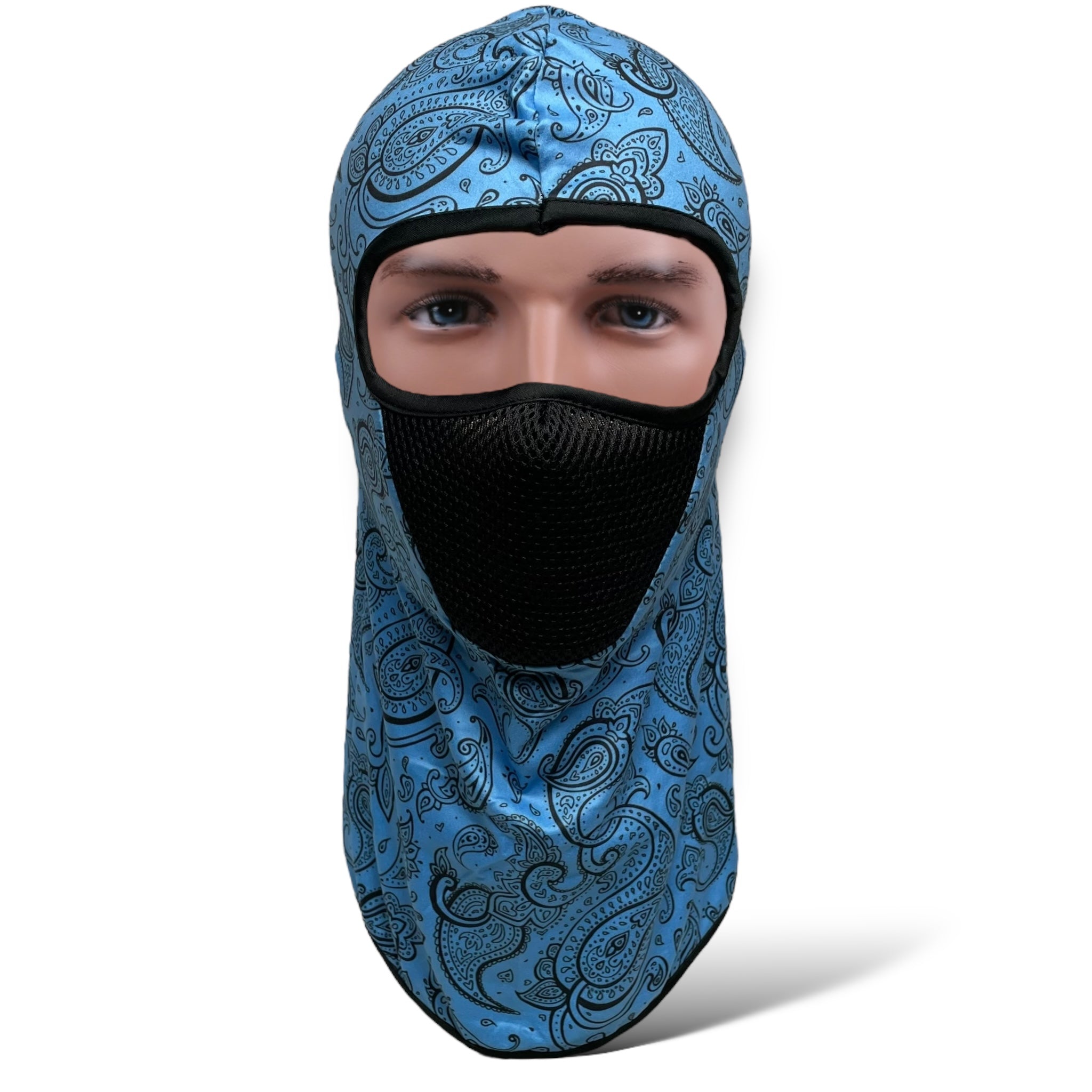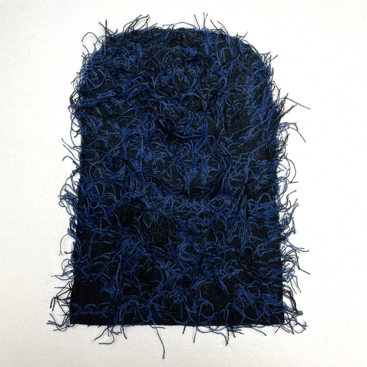 • Distressed Knit Full-Face Balaclava Ski Mask - Black/Blue Winter Hip-Hop Headgear