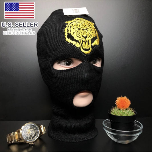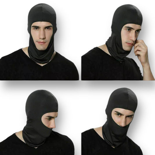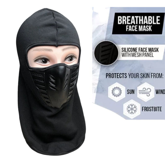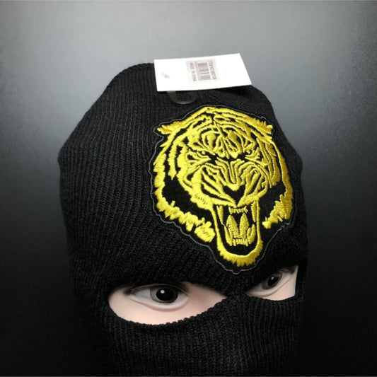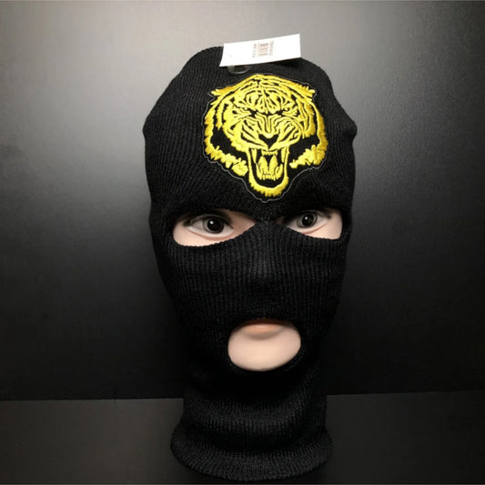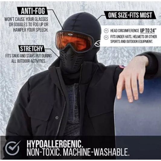 • Distressed Knit Full-Face Balaclava Ski Mask - Black Winter Hip-Hop Headgear