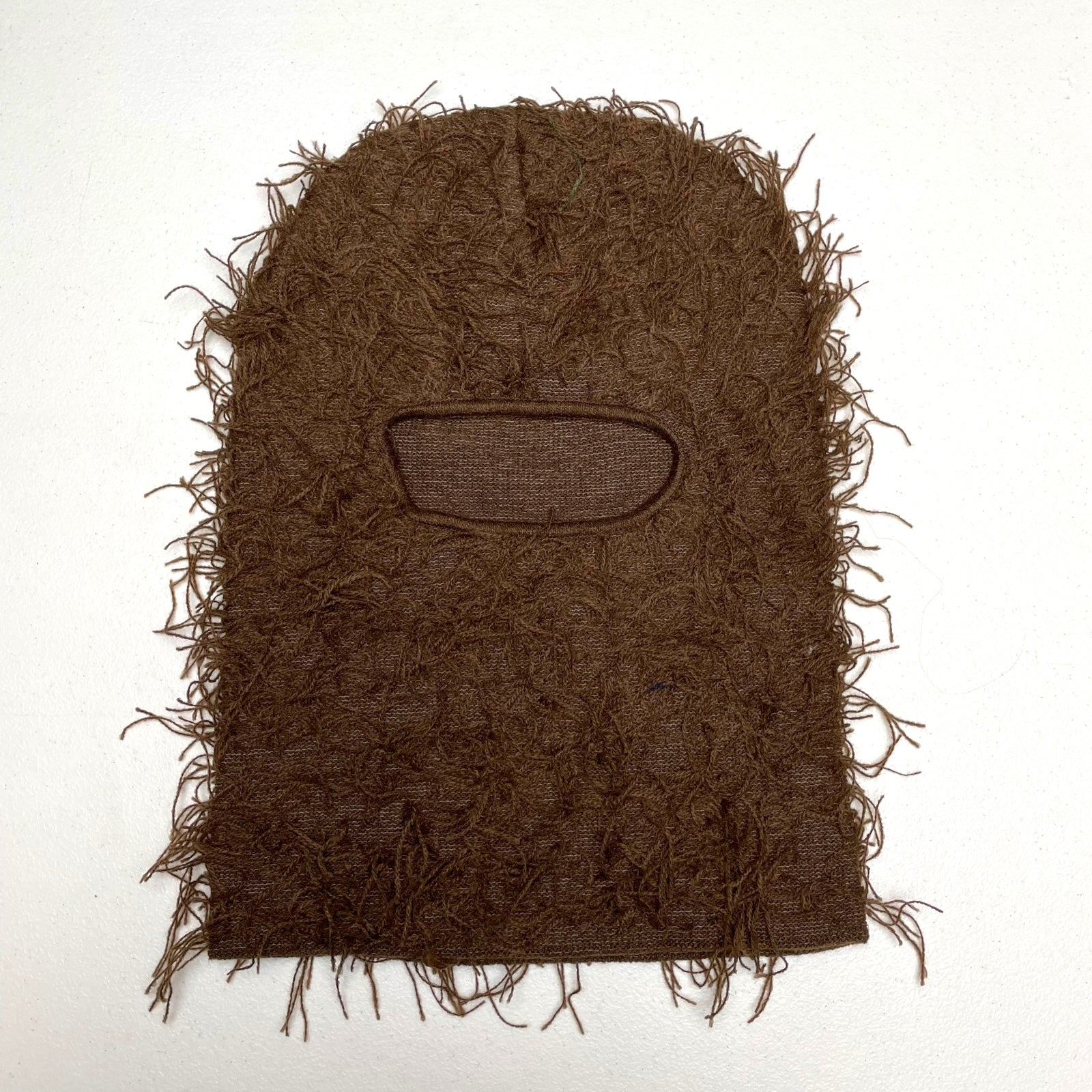 • Distressed Knit Full-Face Balaclava Ski Mask - Brown Winter Hip-Hop Headgear