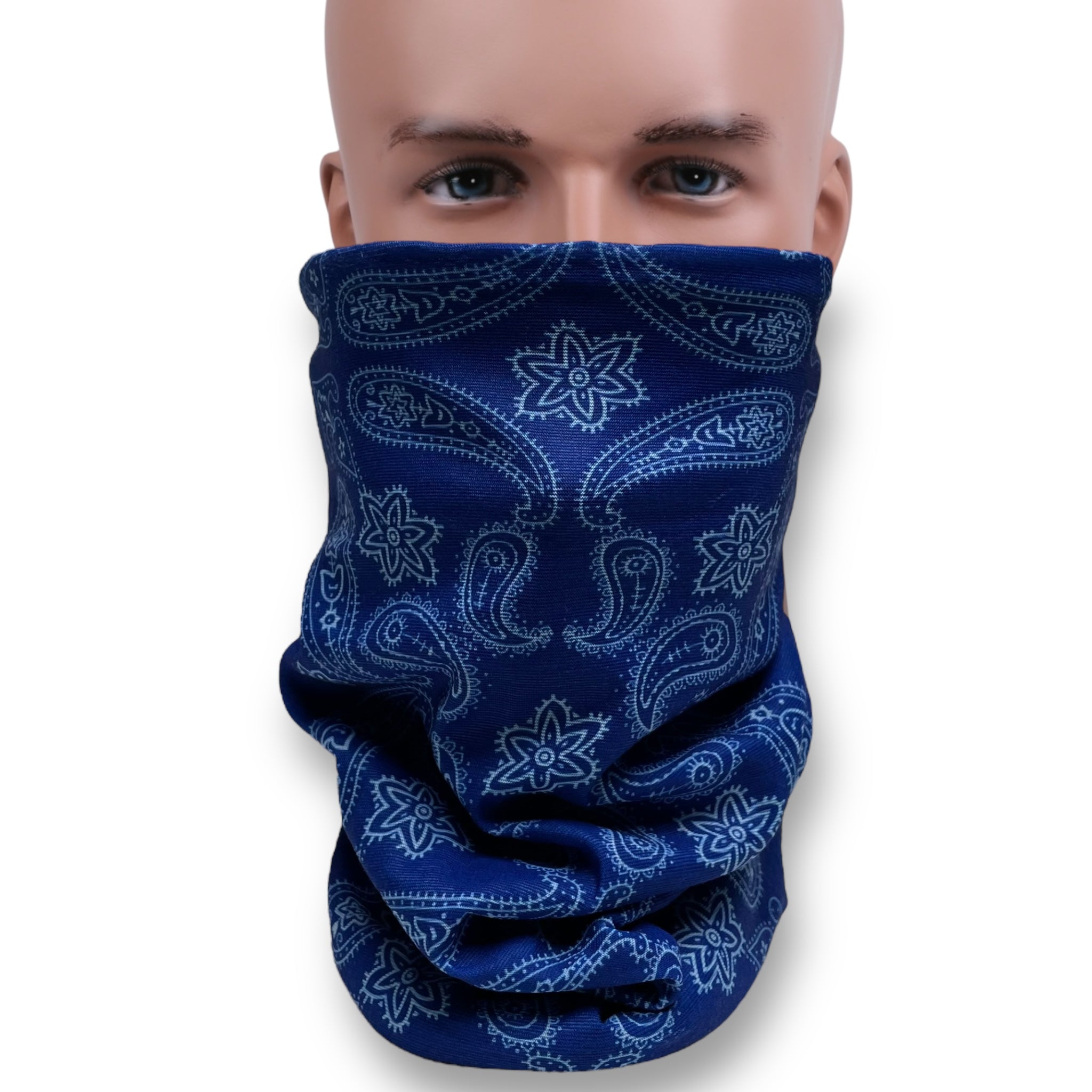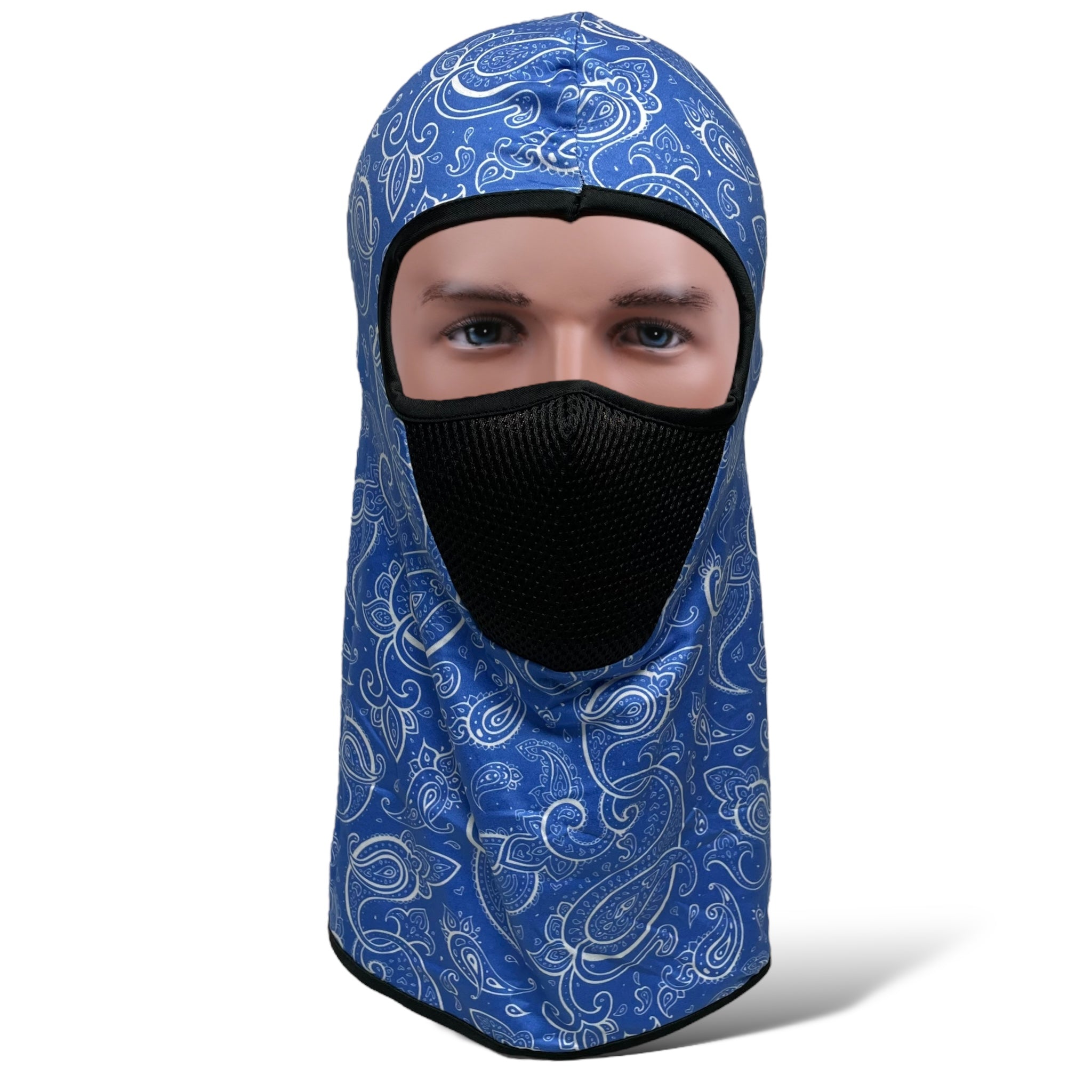 • Distressed Knit Full-Face Balaclava Ski Mask - Blue/White Winter Hip-Hop Headgear