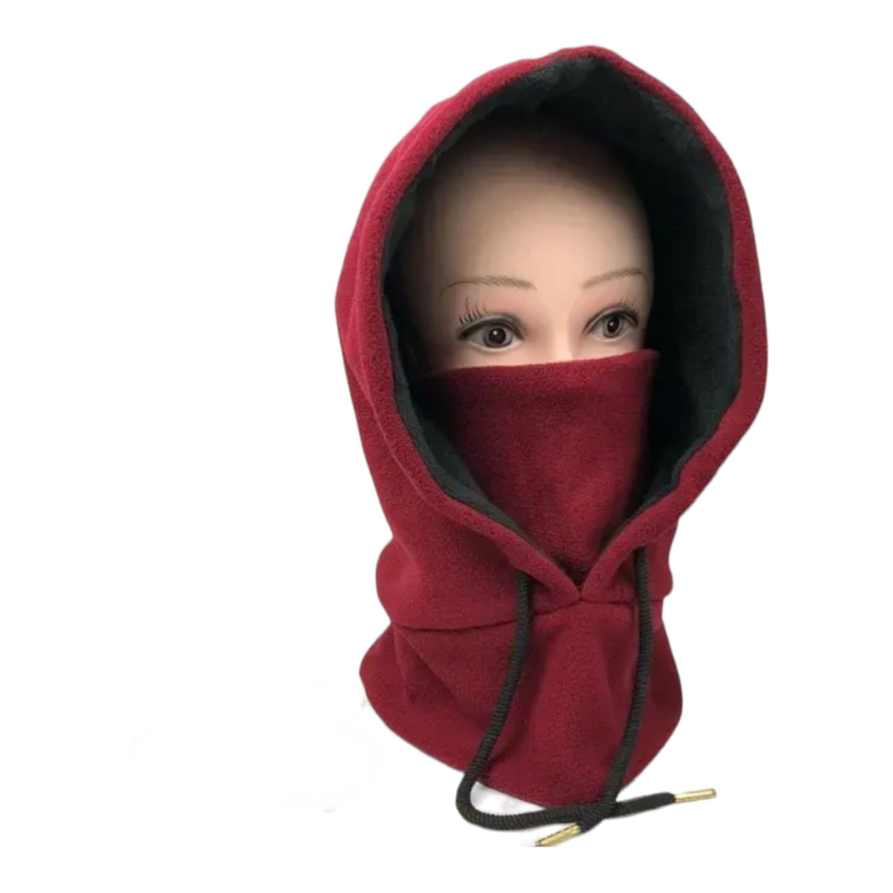 • Distressed Knit Full-Face Balaclava Ski Mask - Red Winter Hip-Hop Headgear