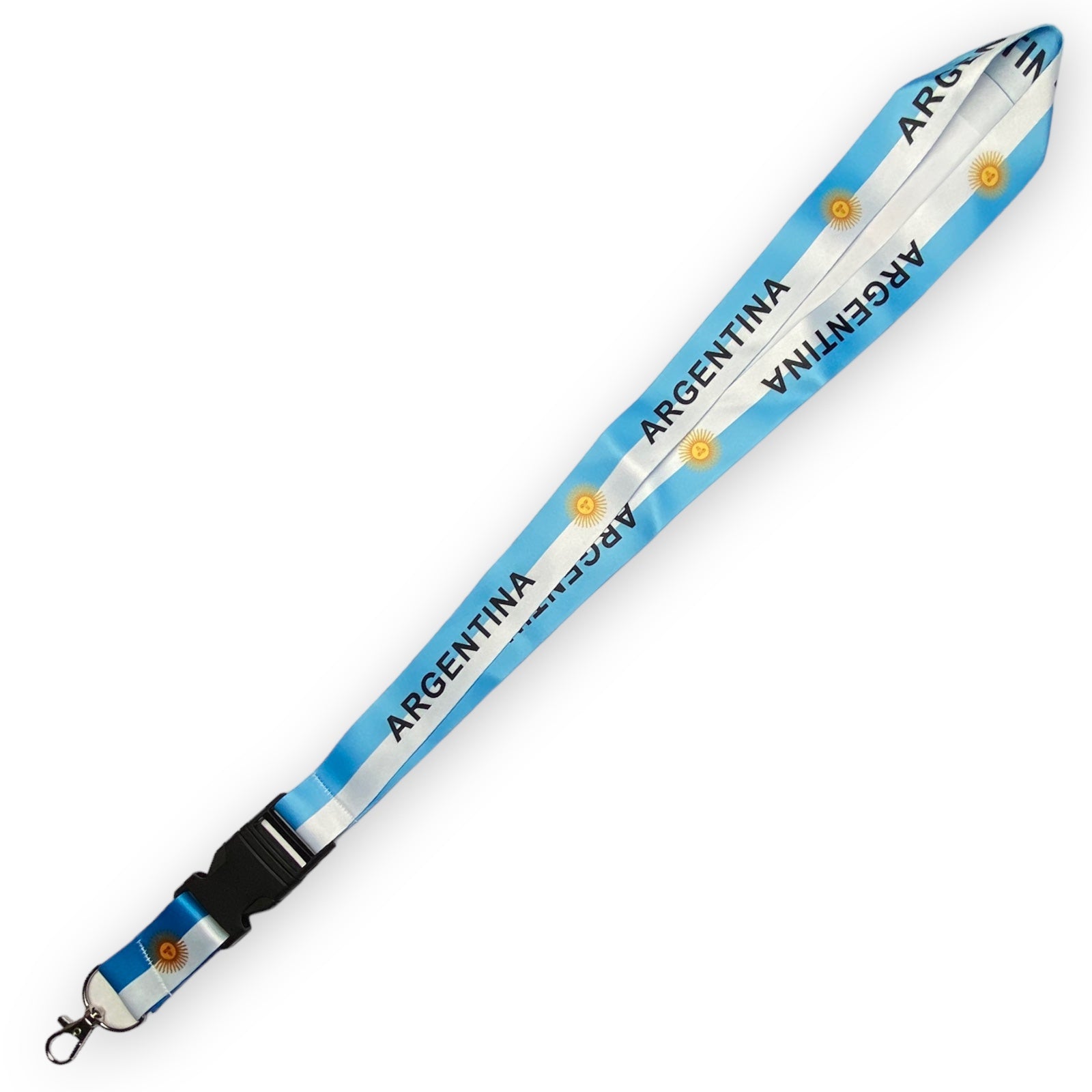 This flag lanyard keychain is a practical way to keep IDs and other items secure. It features a sturdy strap with an Argentina flag pattern and an attached keychain for holding keys or other small items. Ideal for anyone who wants to show their national pride or add a touch of style to their look.