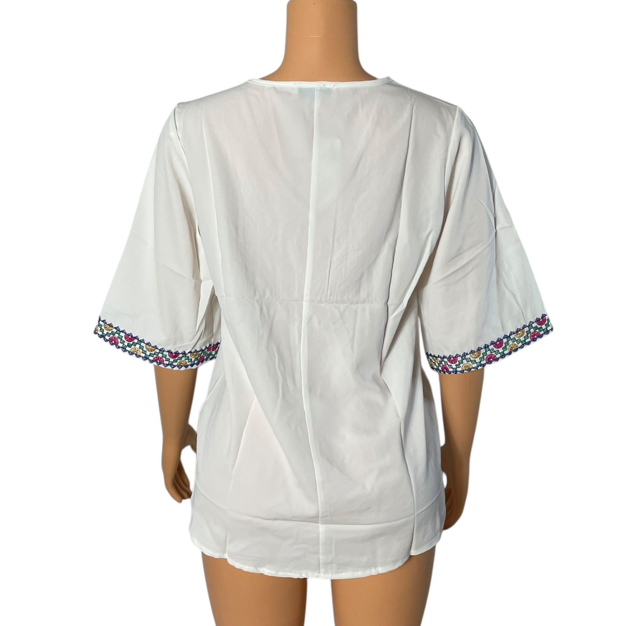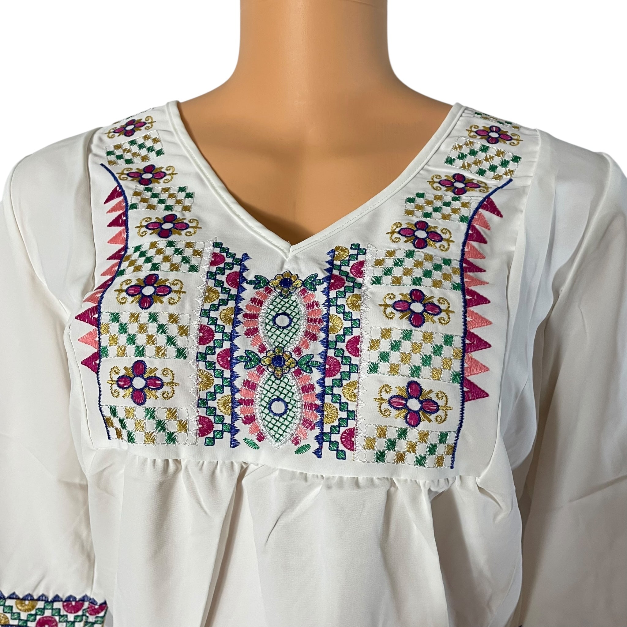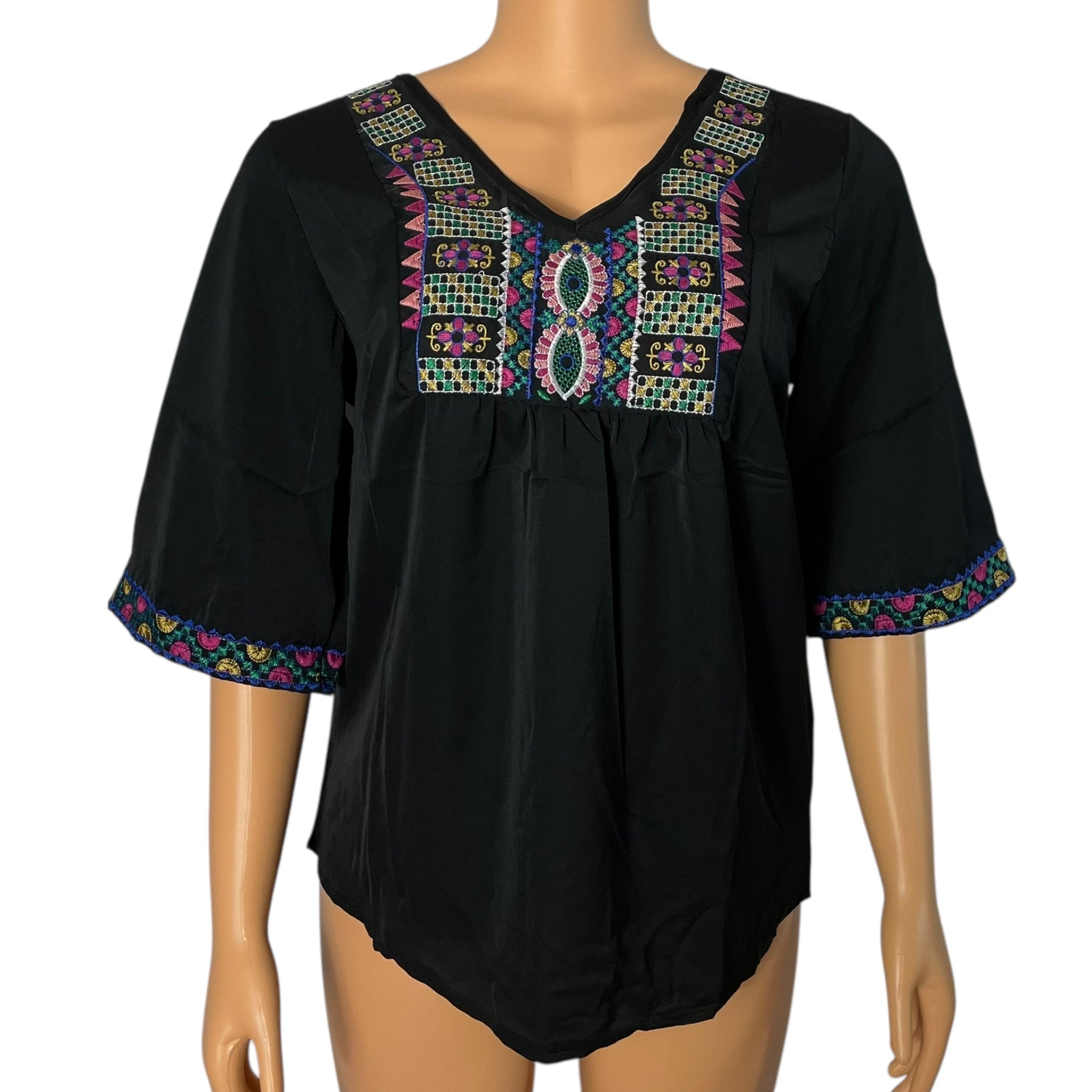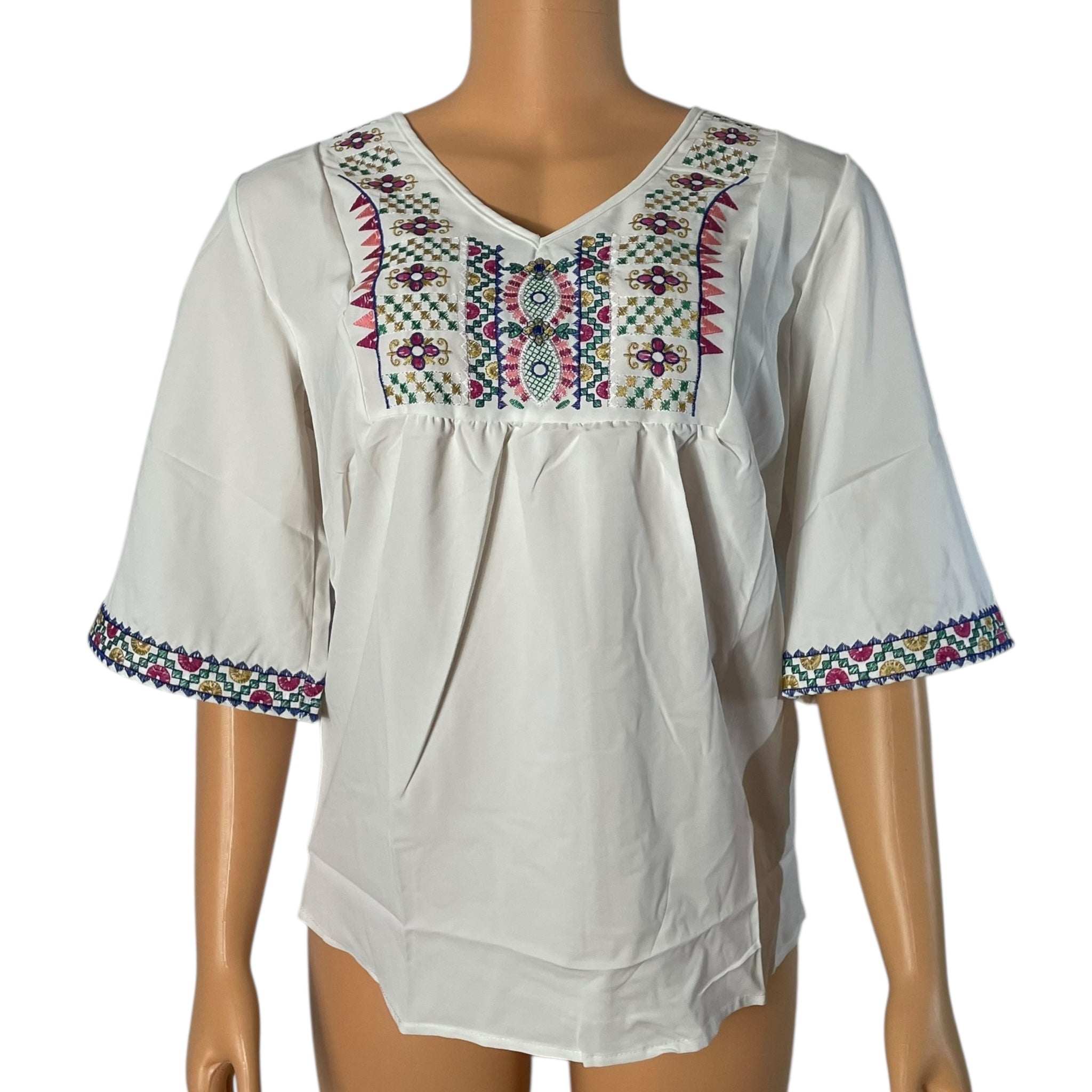 Boho Floral Embroidered Blouse for Women, Elbow-Length Sleeves
