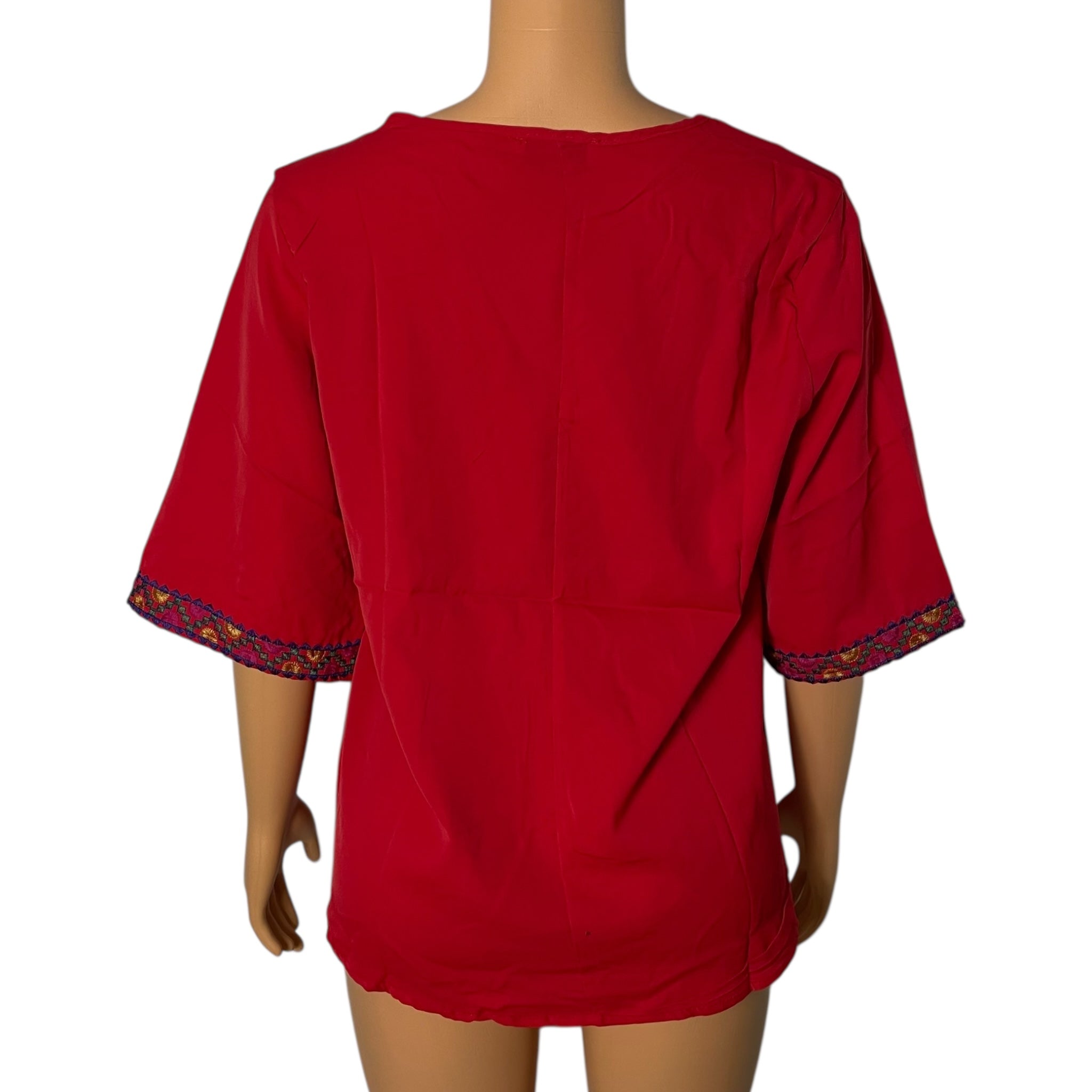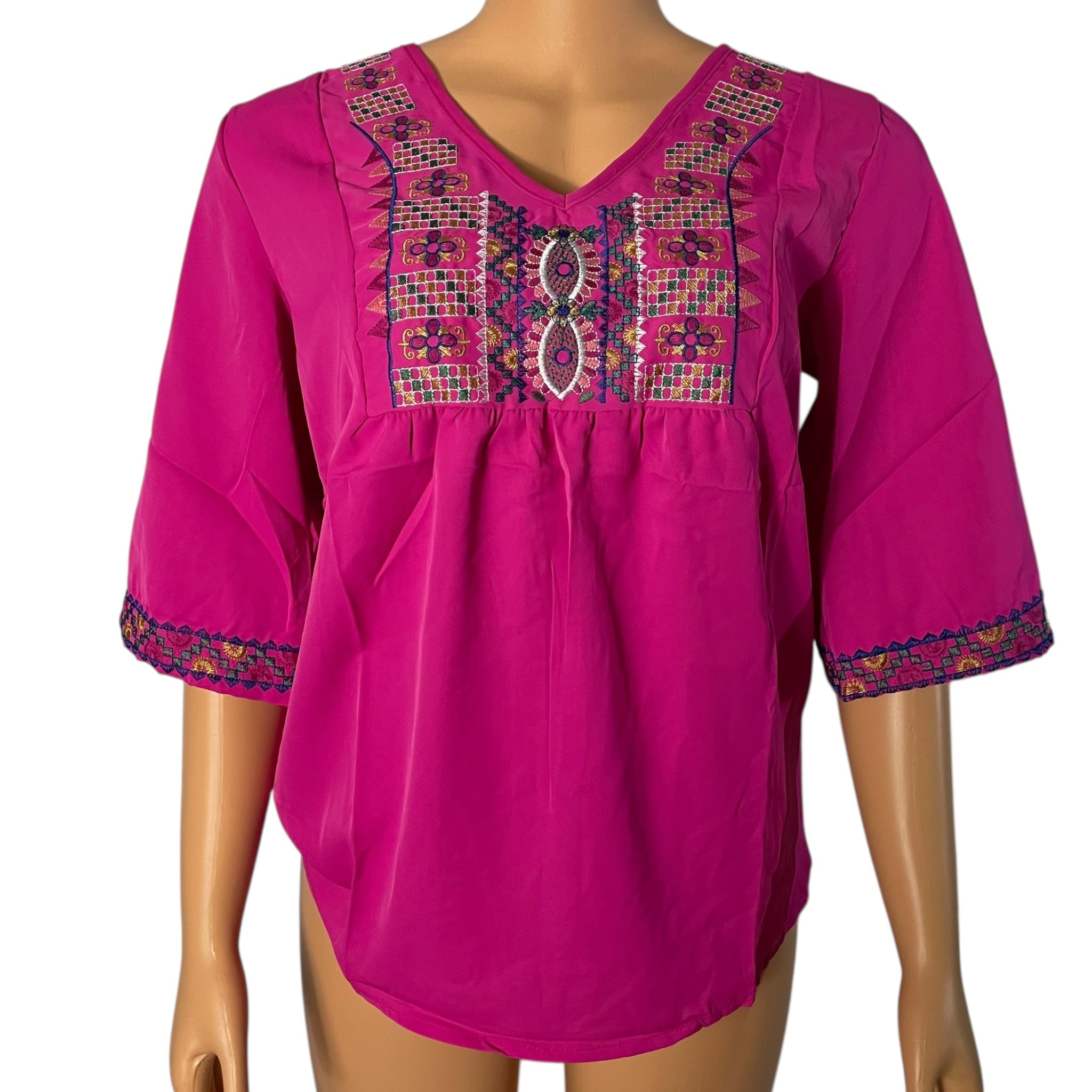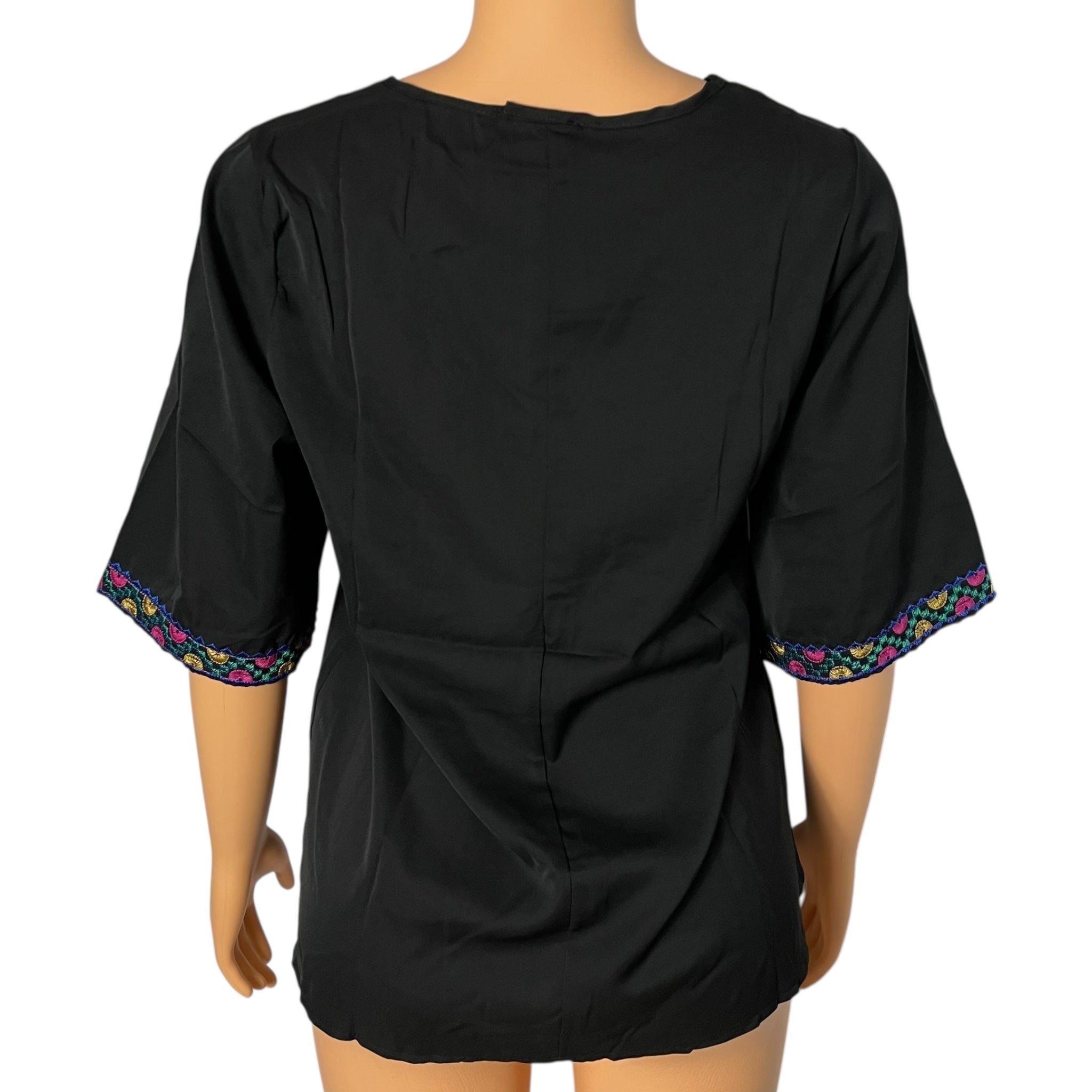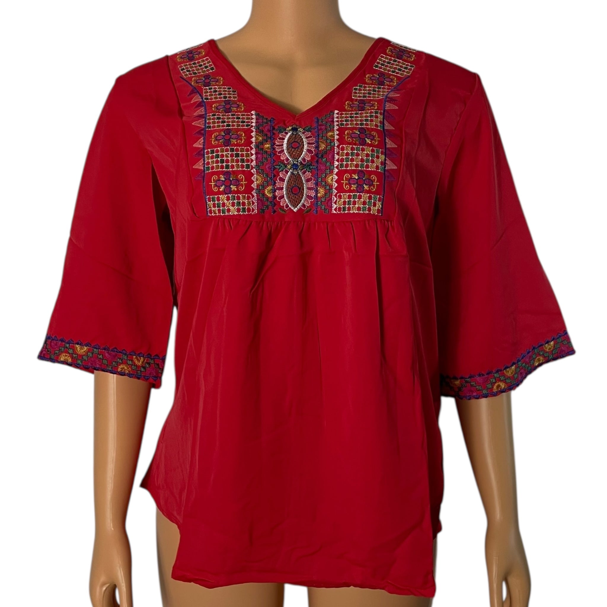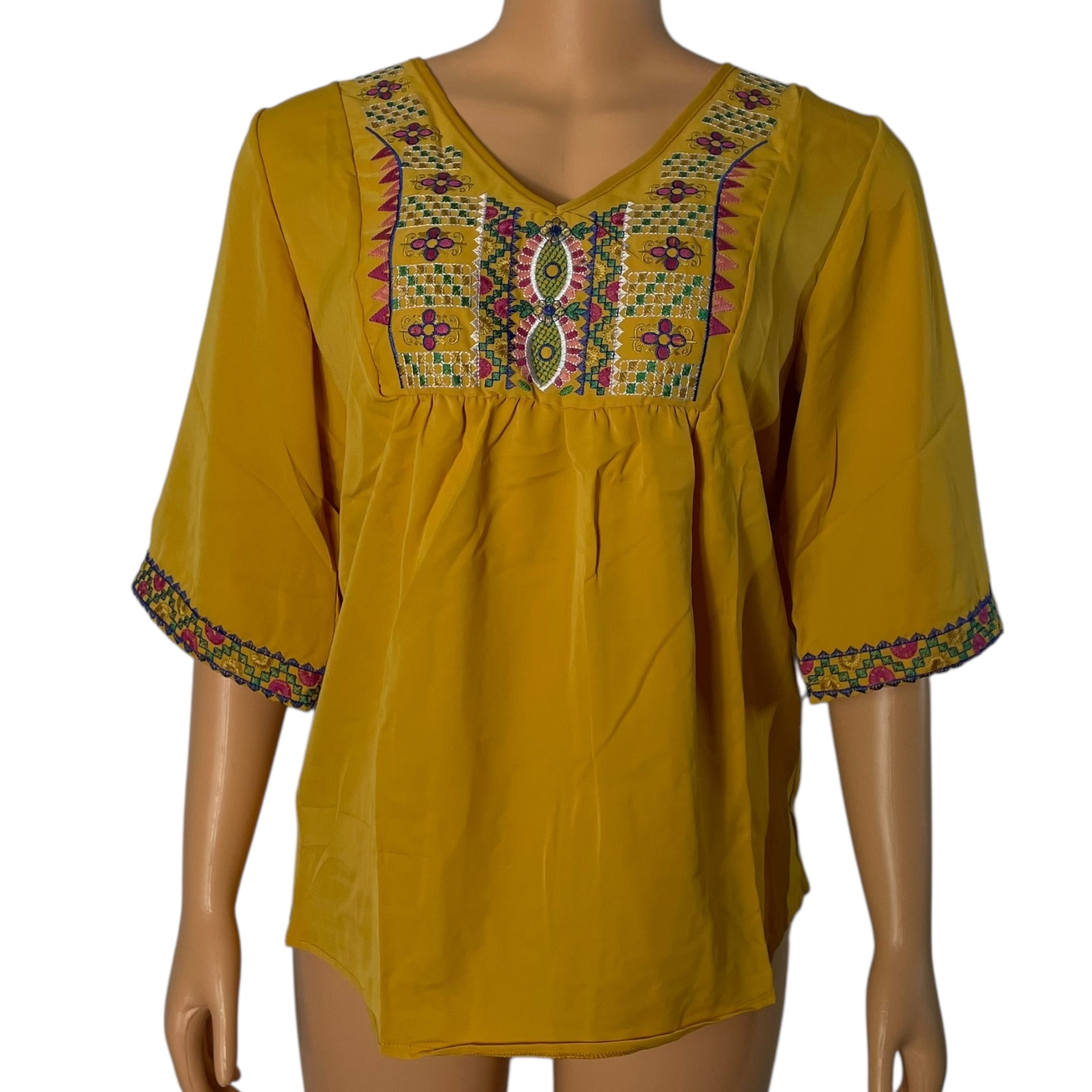 Boho Floral Embroidered Blouse for Women, Elbow-Length Sleeves