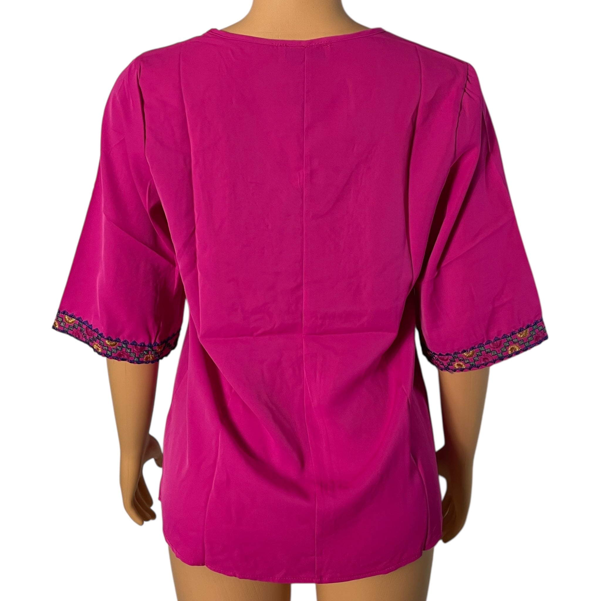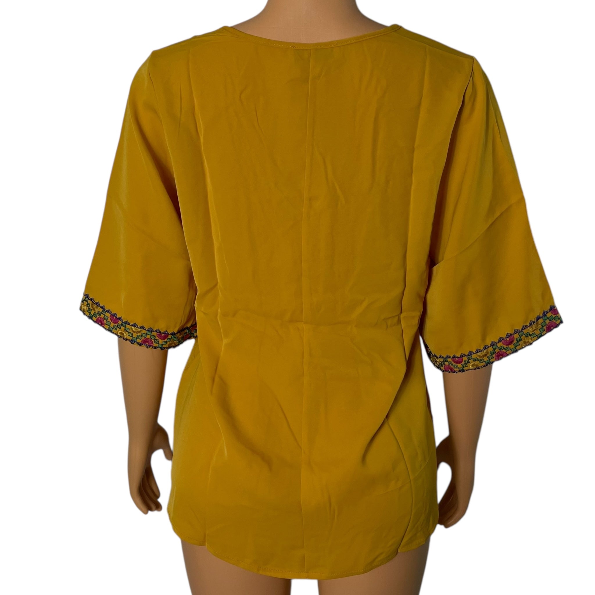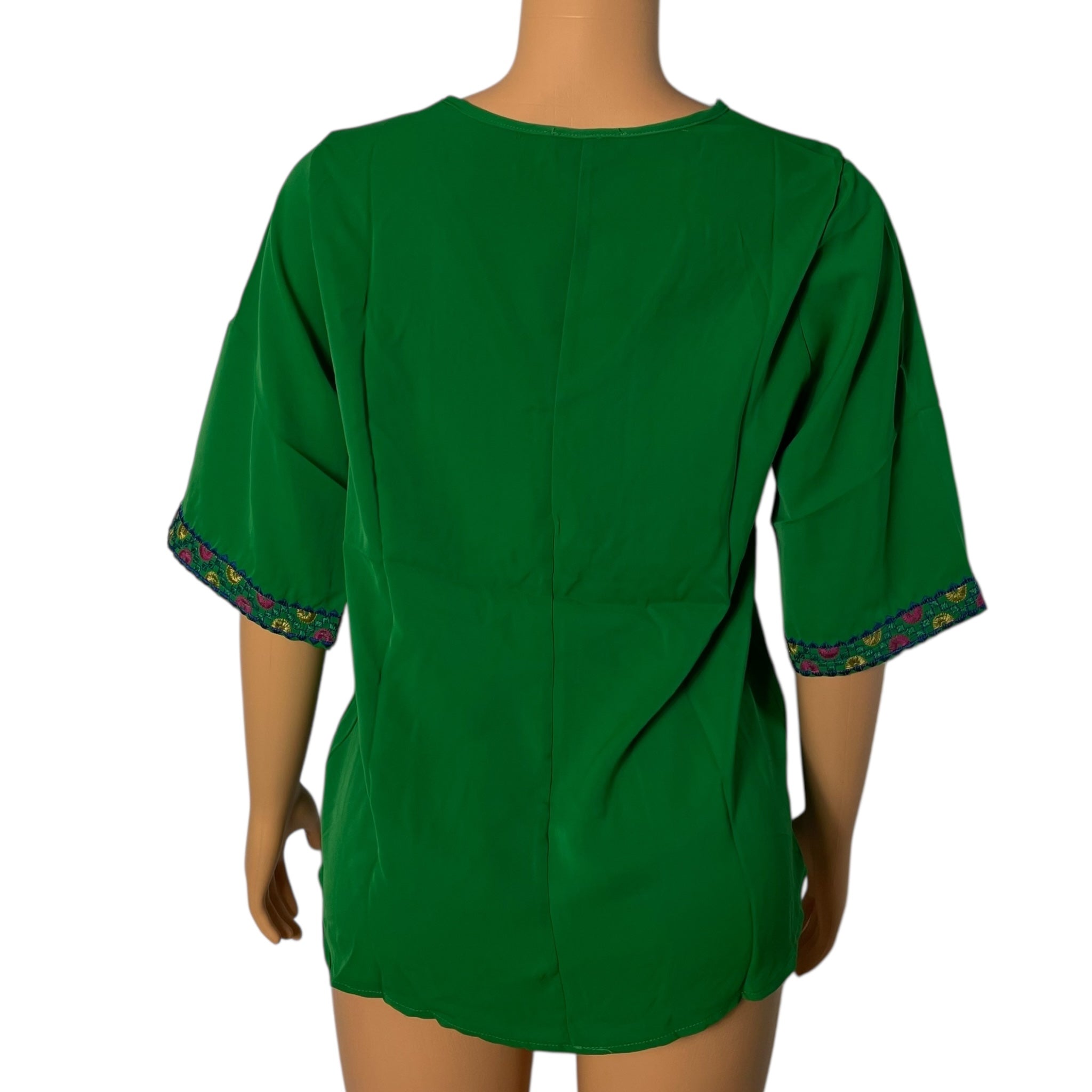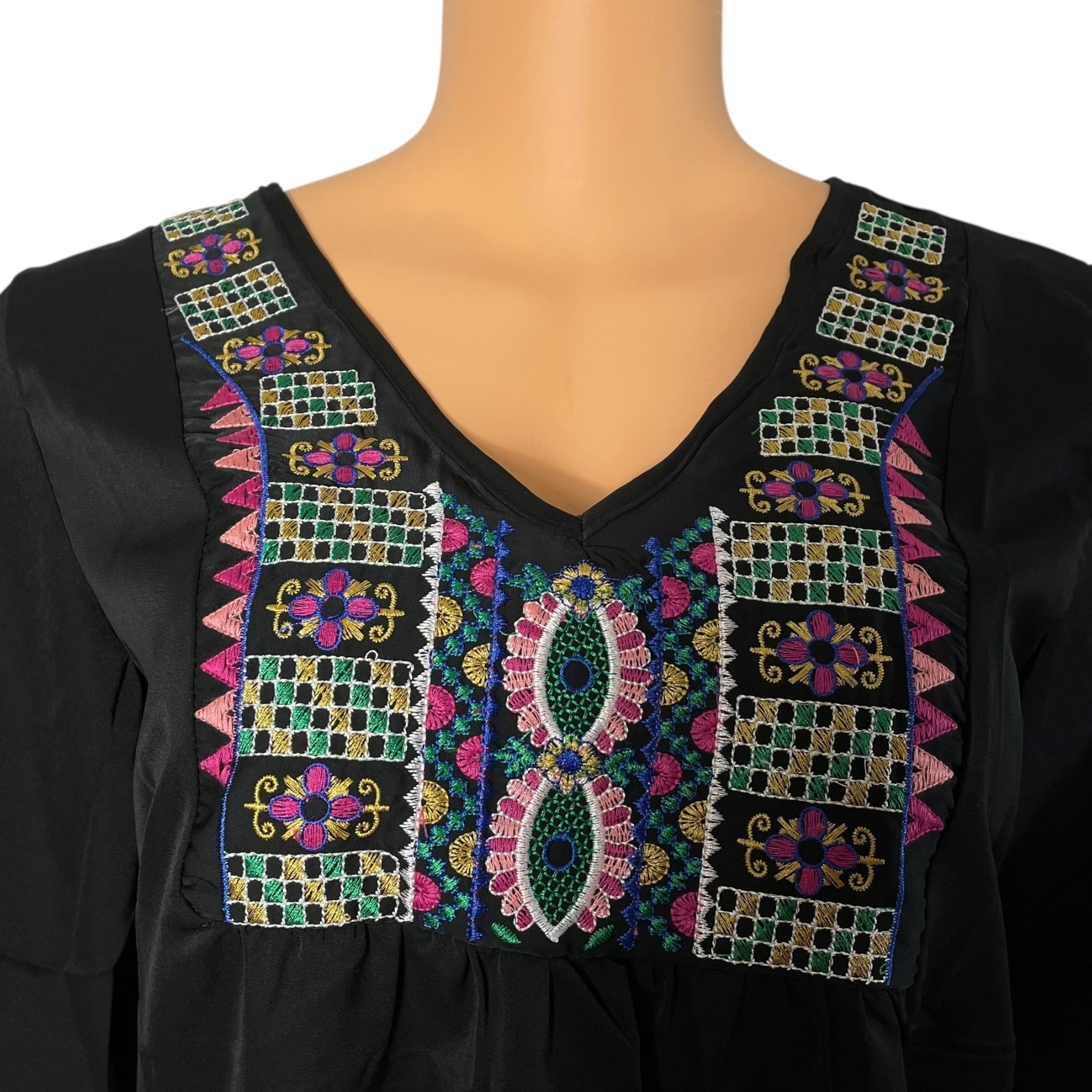 Boho Floral Embroidered Blouse for Women, Elbow-Length Sleeves