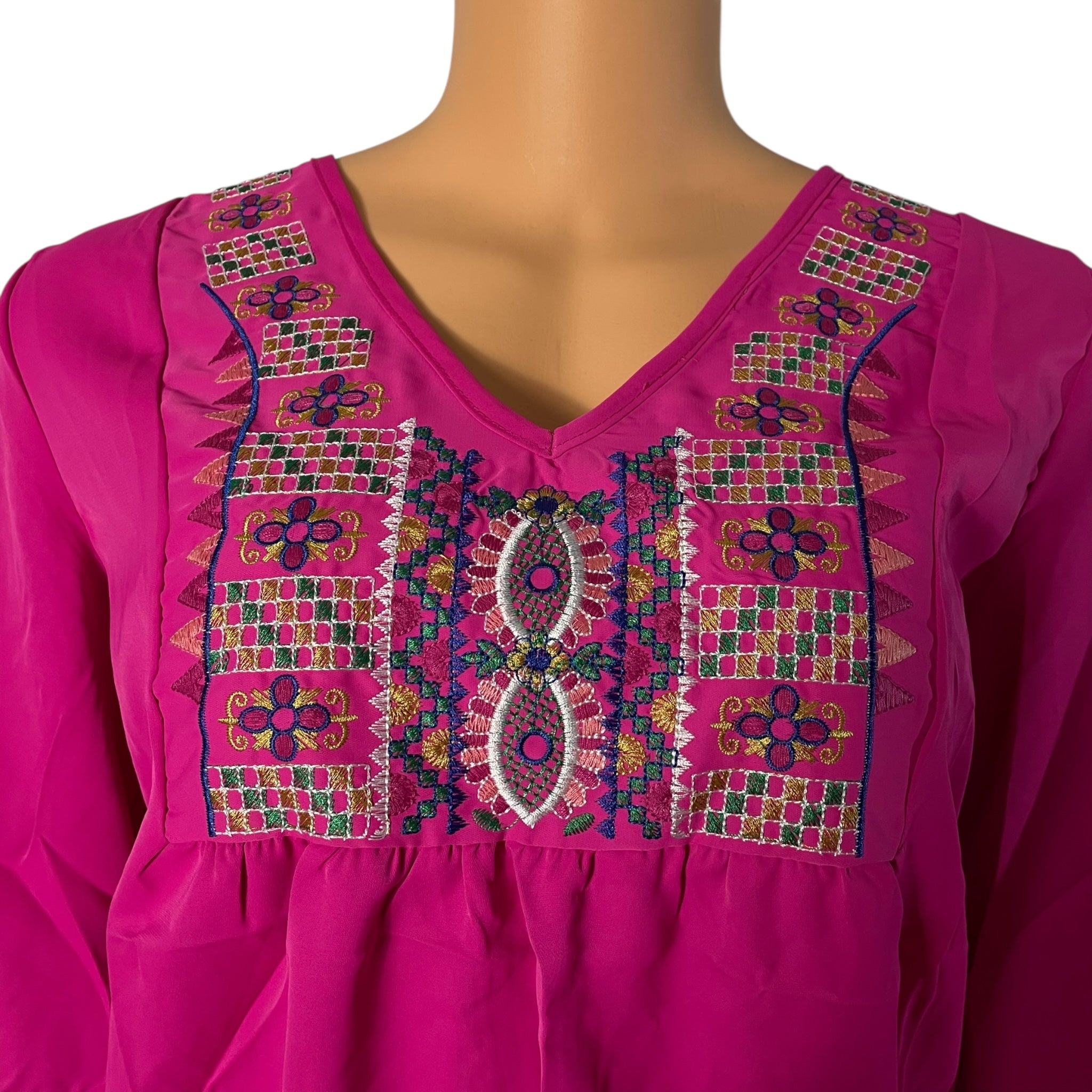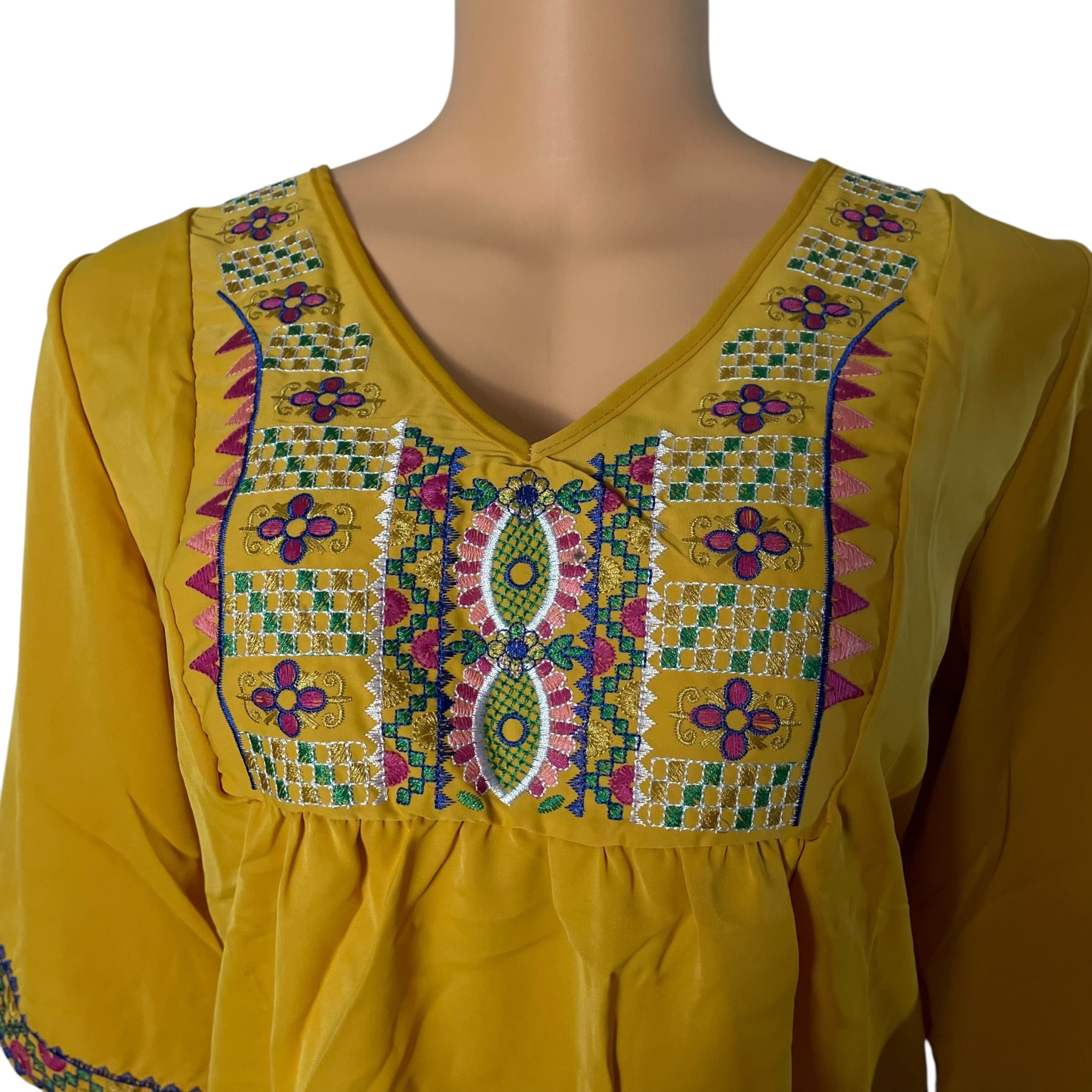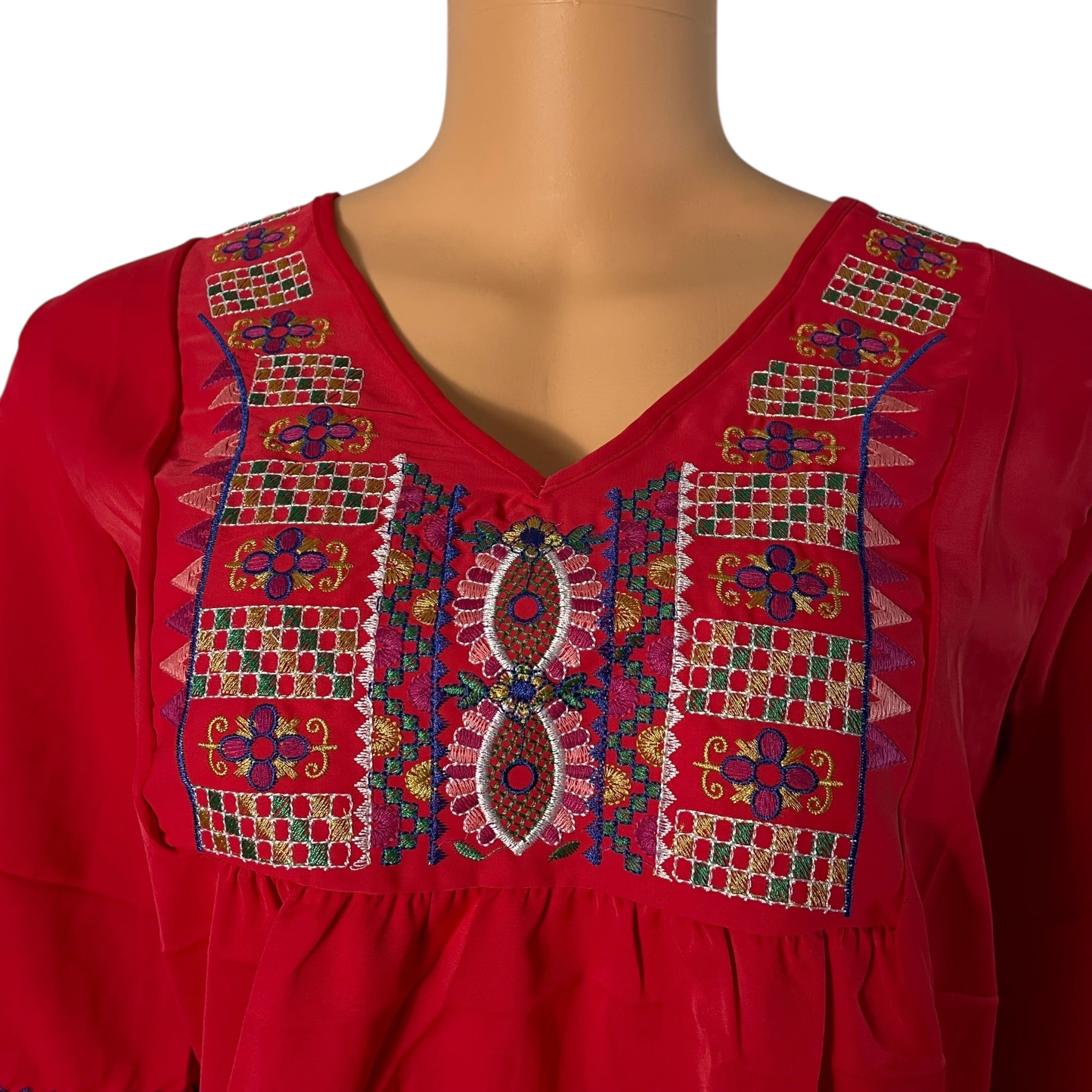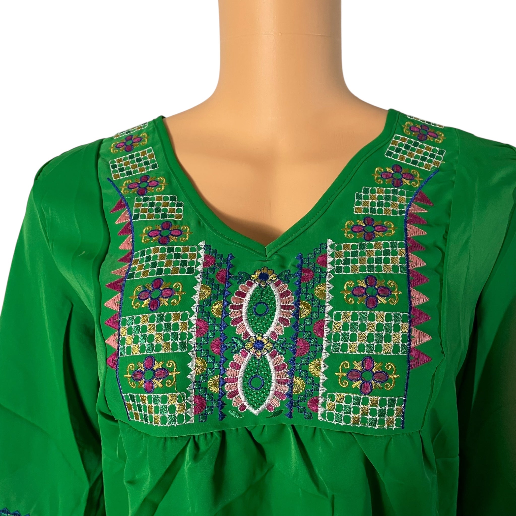 - Features: Elbow-Length Sleeves, embroidery