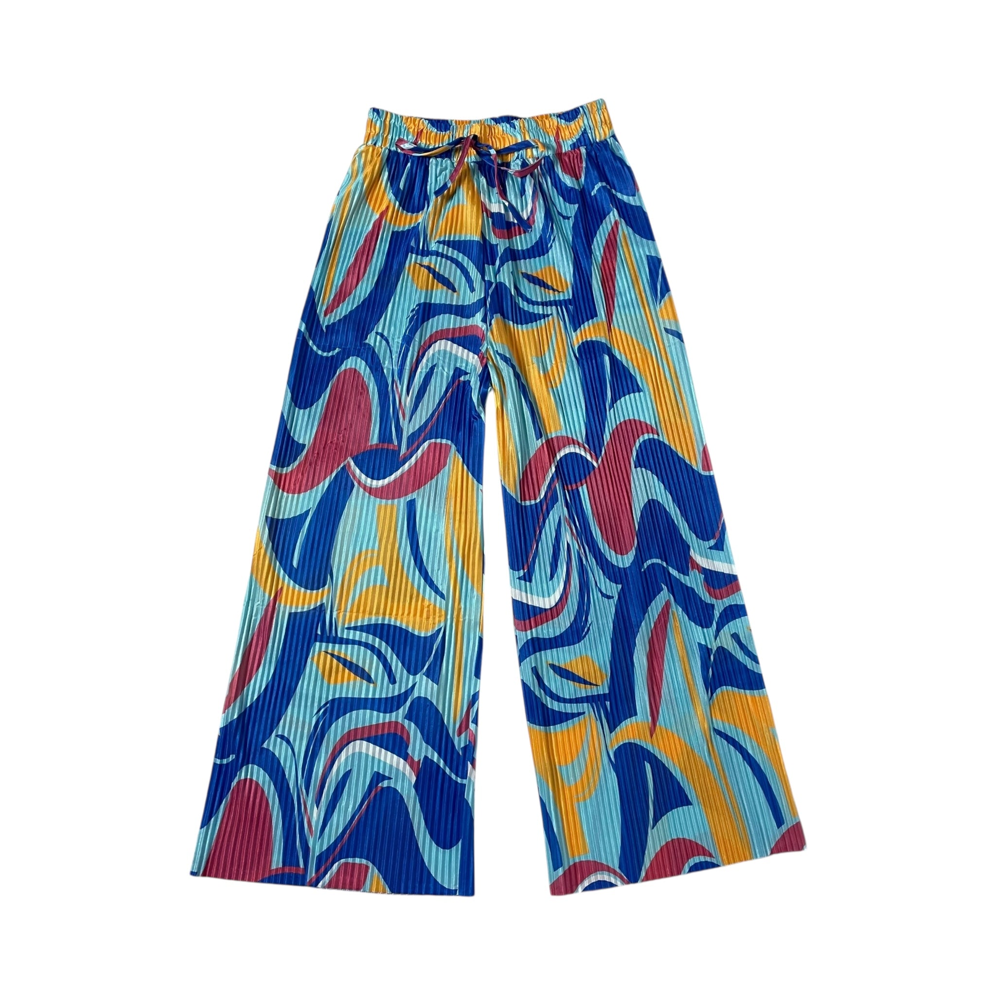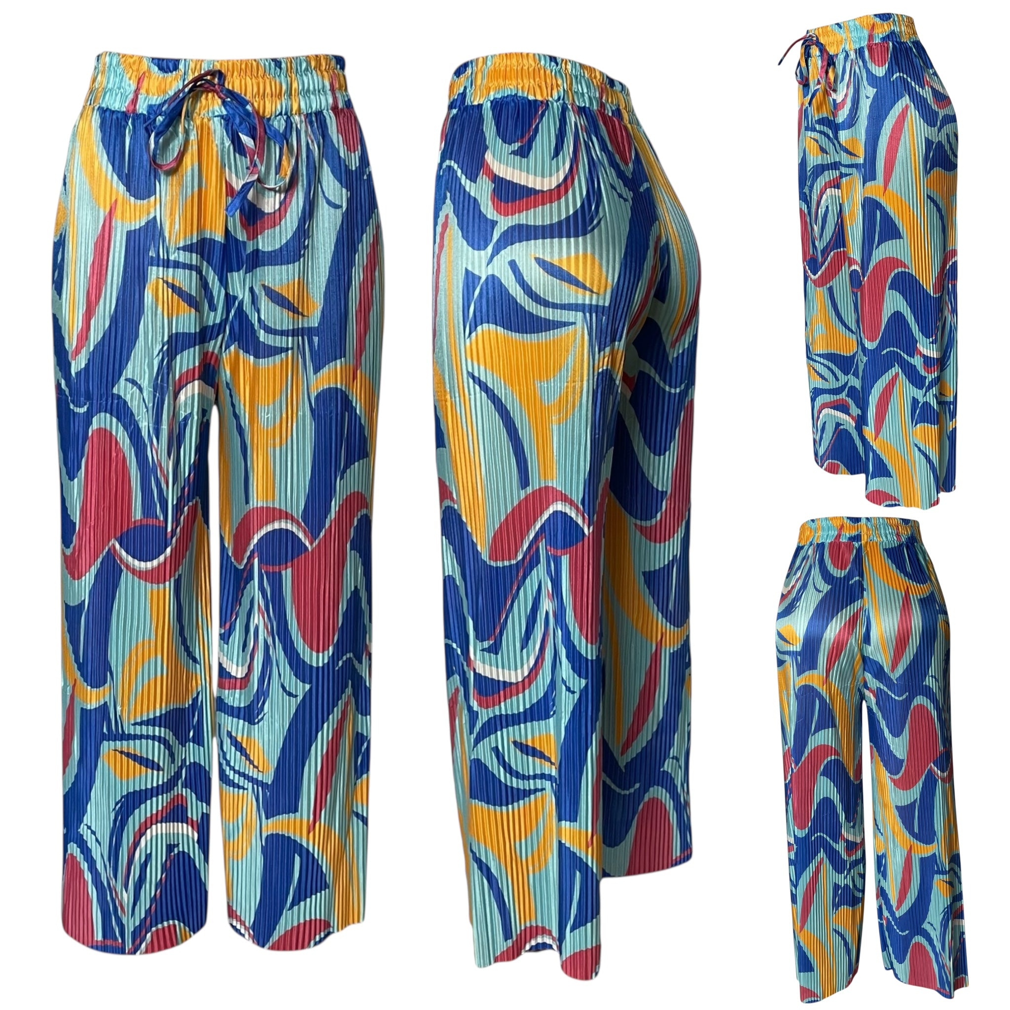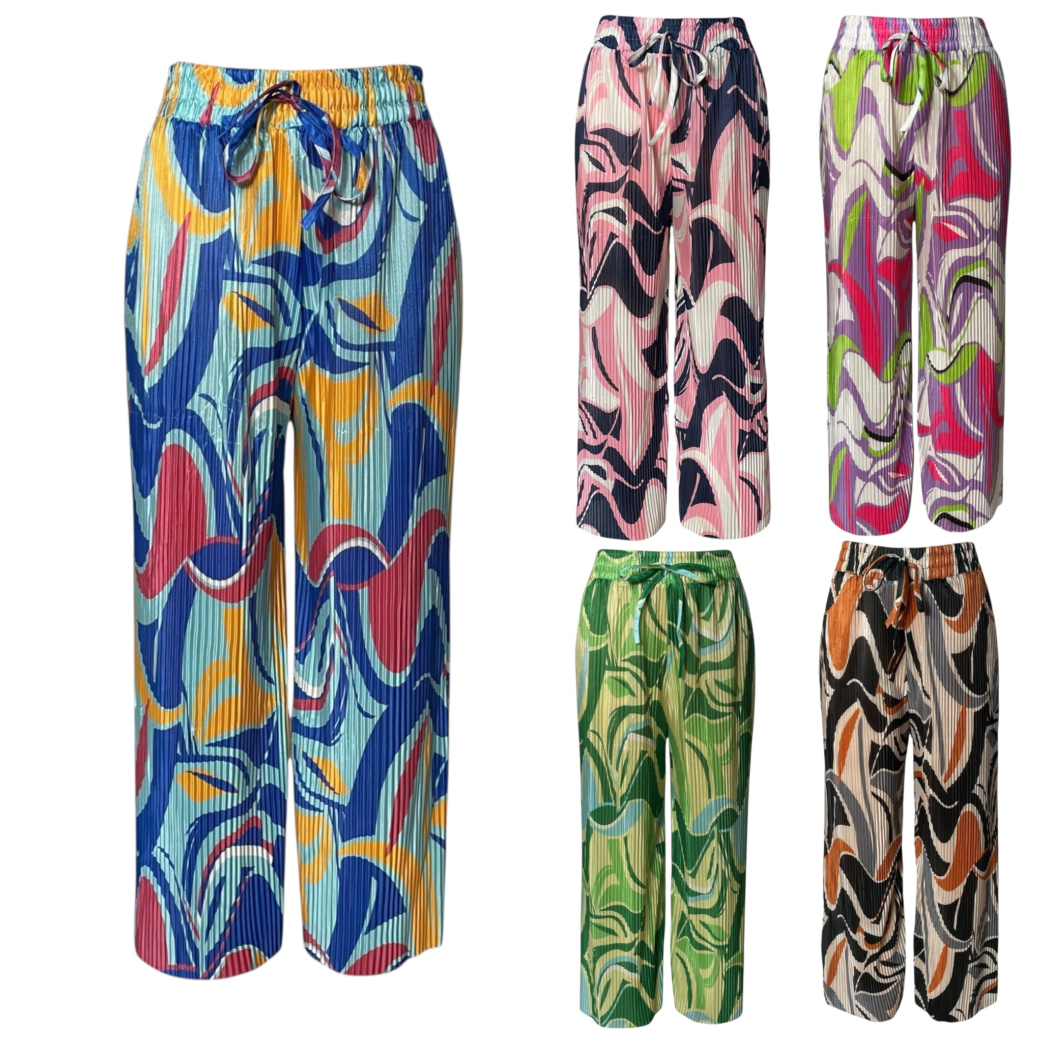 Colorful Pattern Women’s Loose Summer Trousers with Elastic Waist