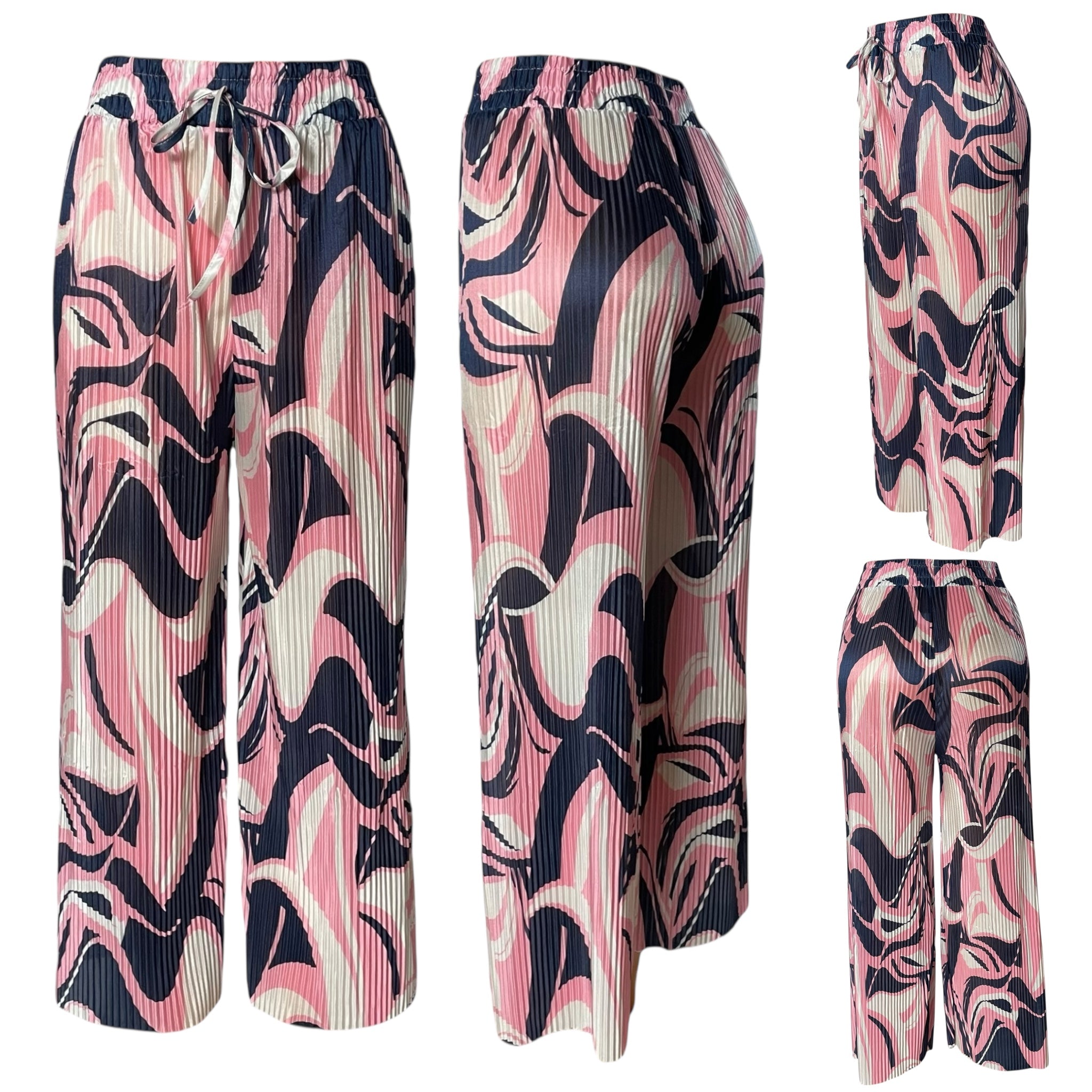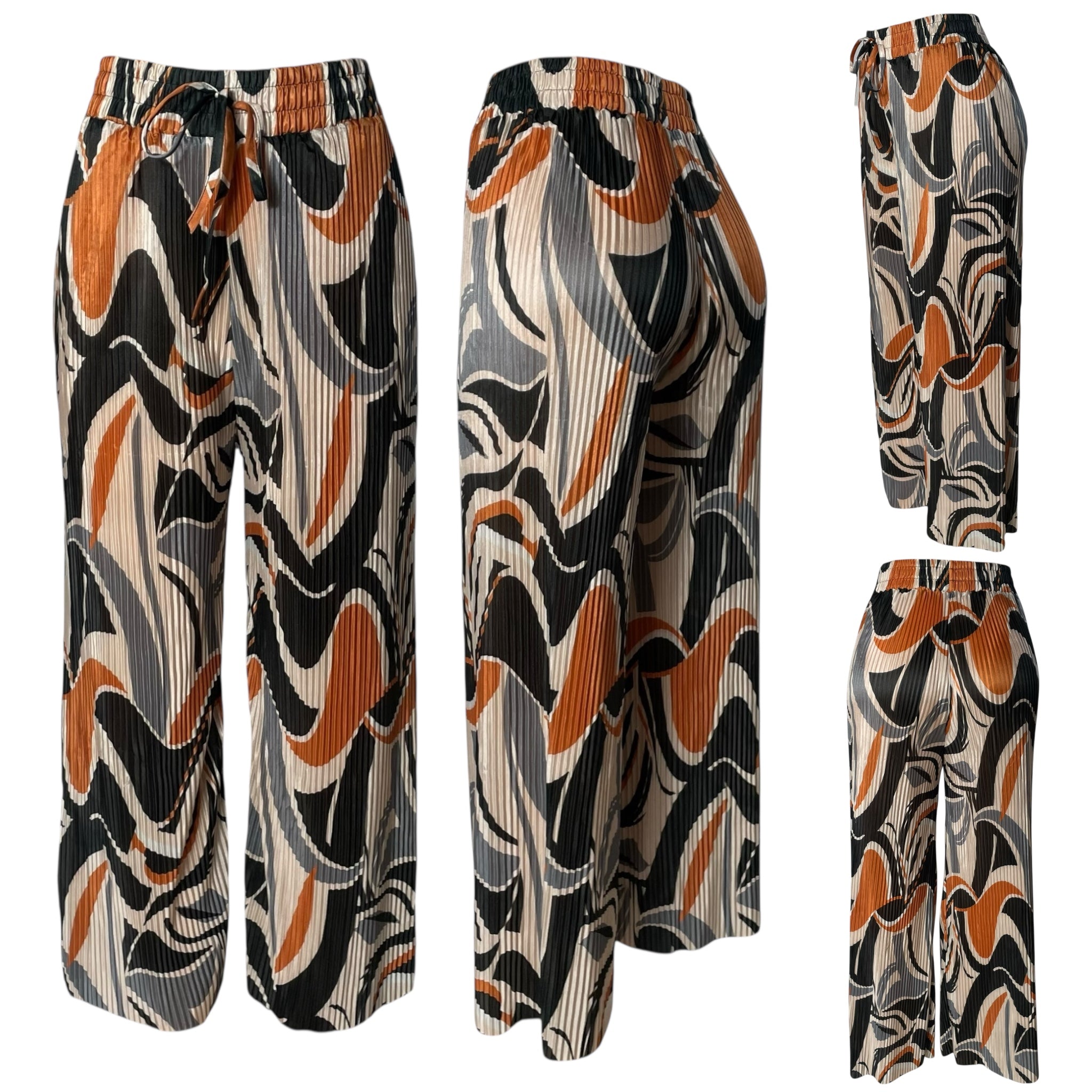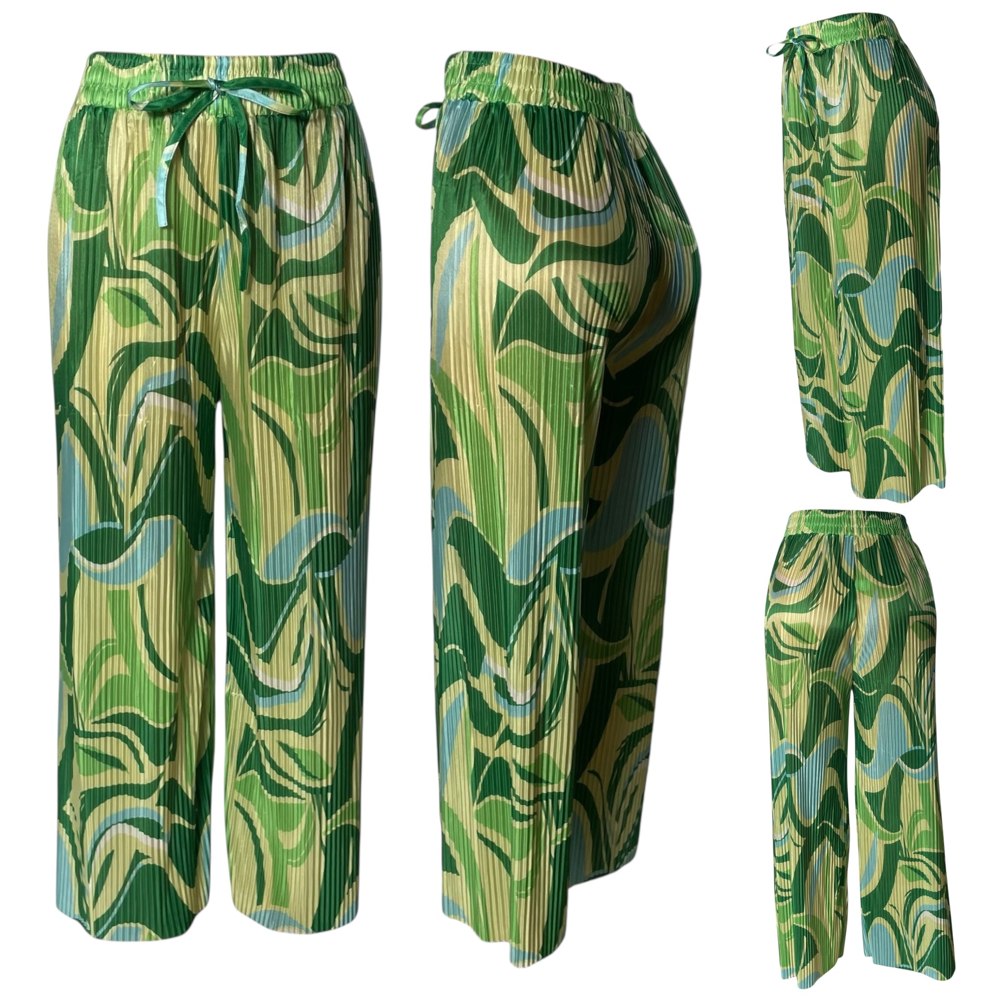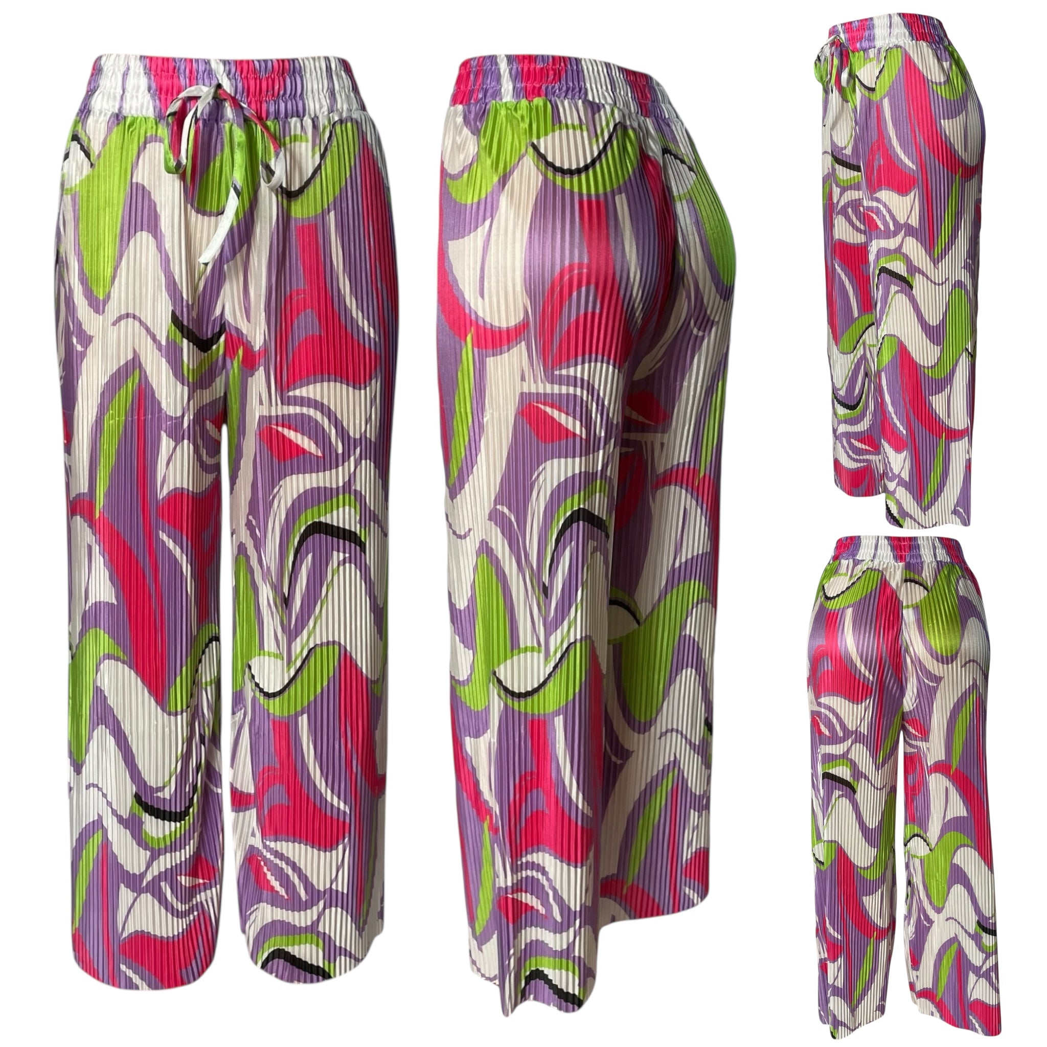 Colorful Pattern Women’s Loose Summer Trousers with Elastic Waist