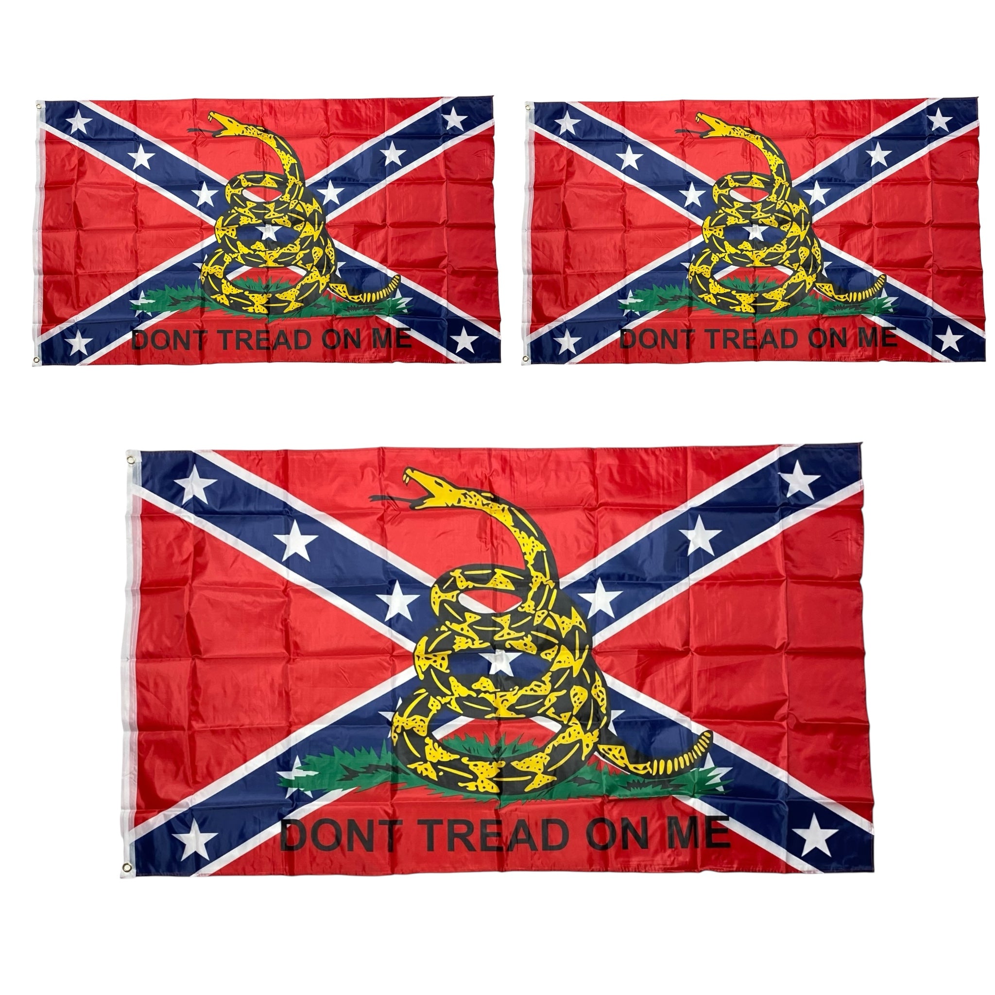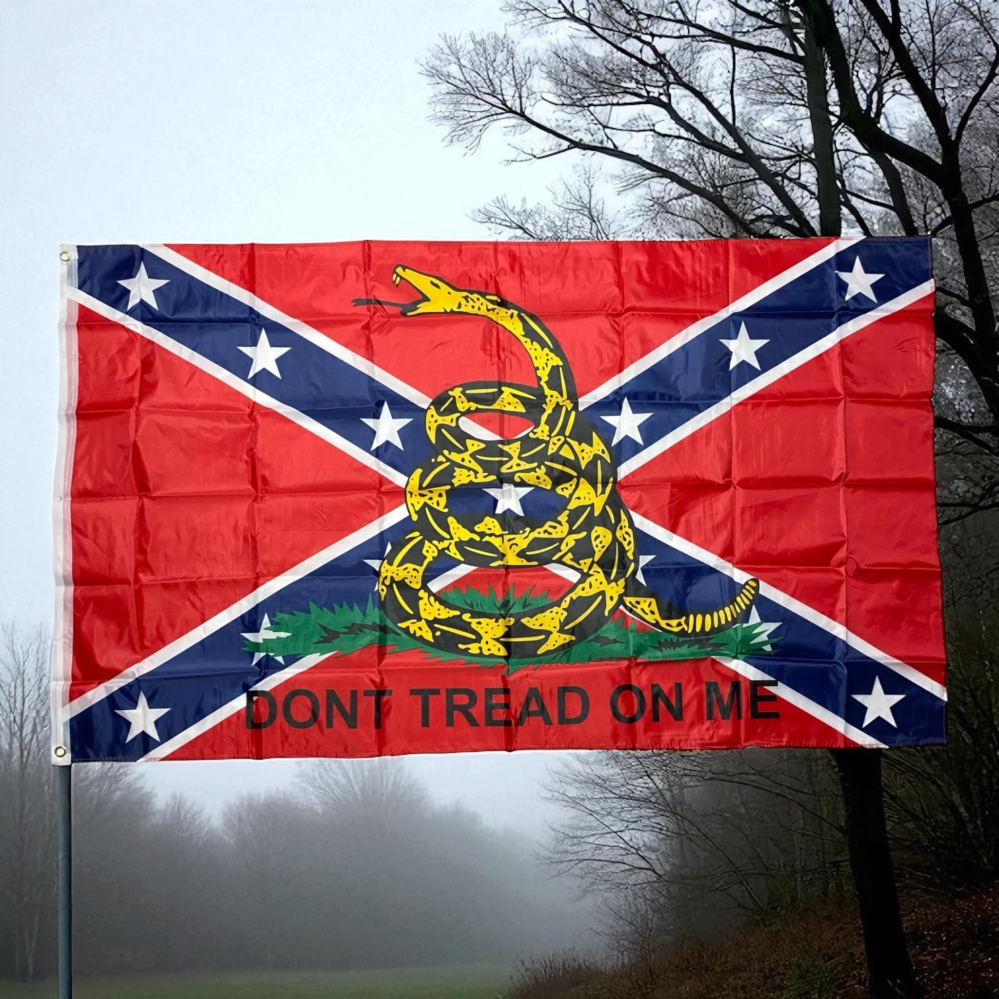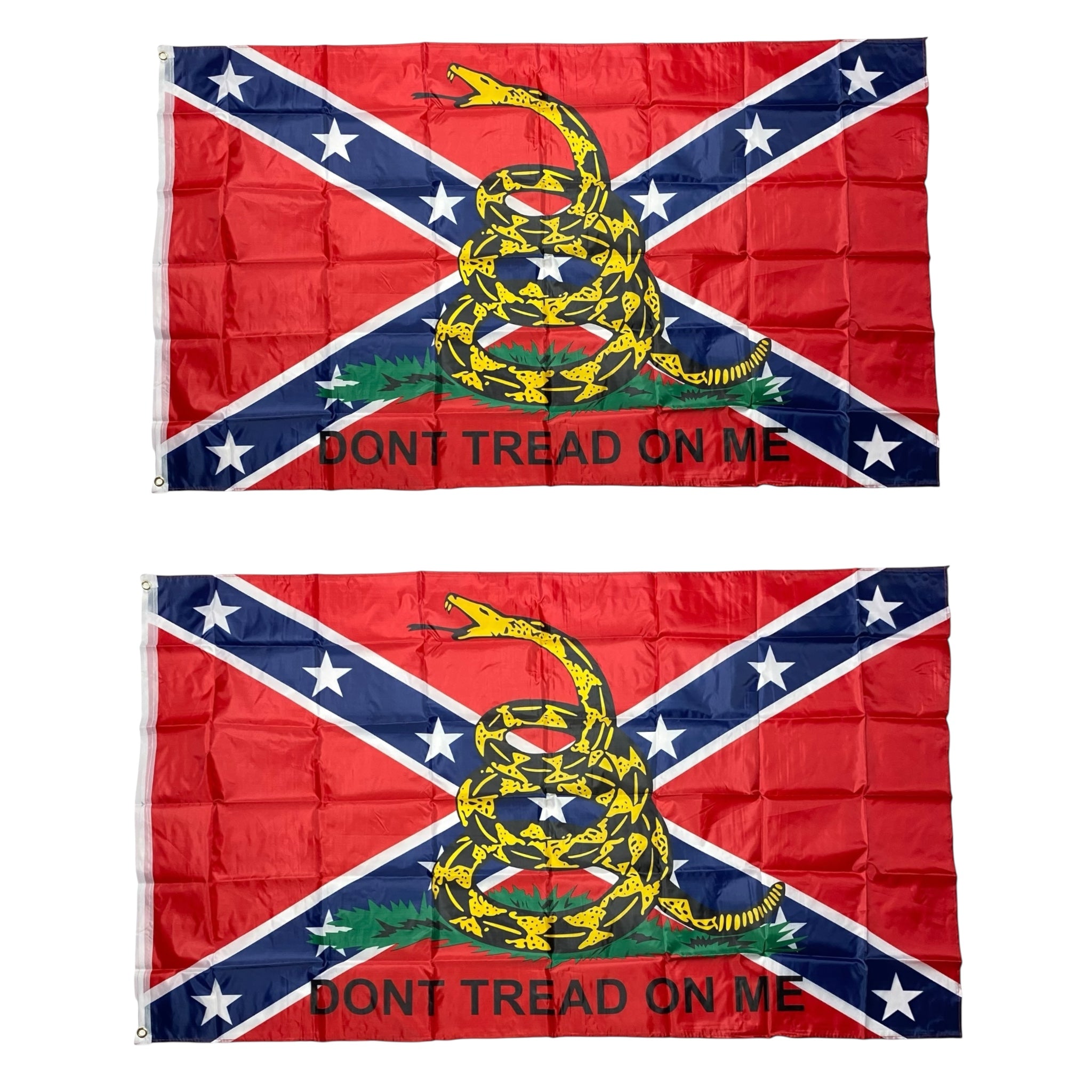 Show your pride with this Gadsden and Confederate printed flag, 3'x5', durable polyester for indoor or outdoor display, events, and decoration!