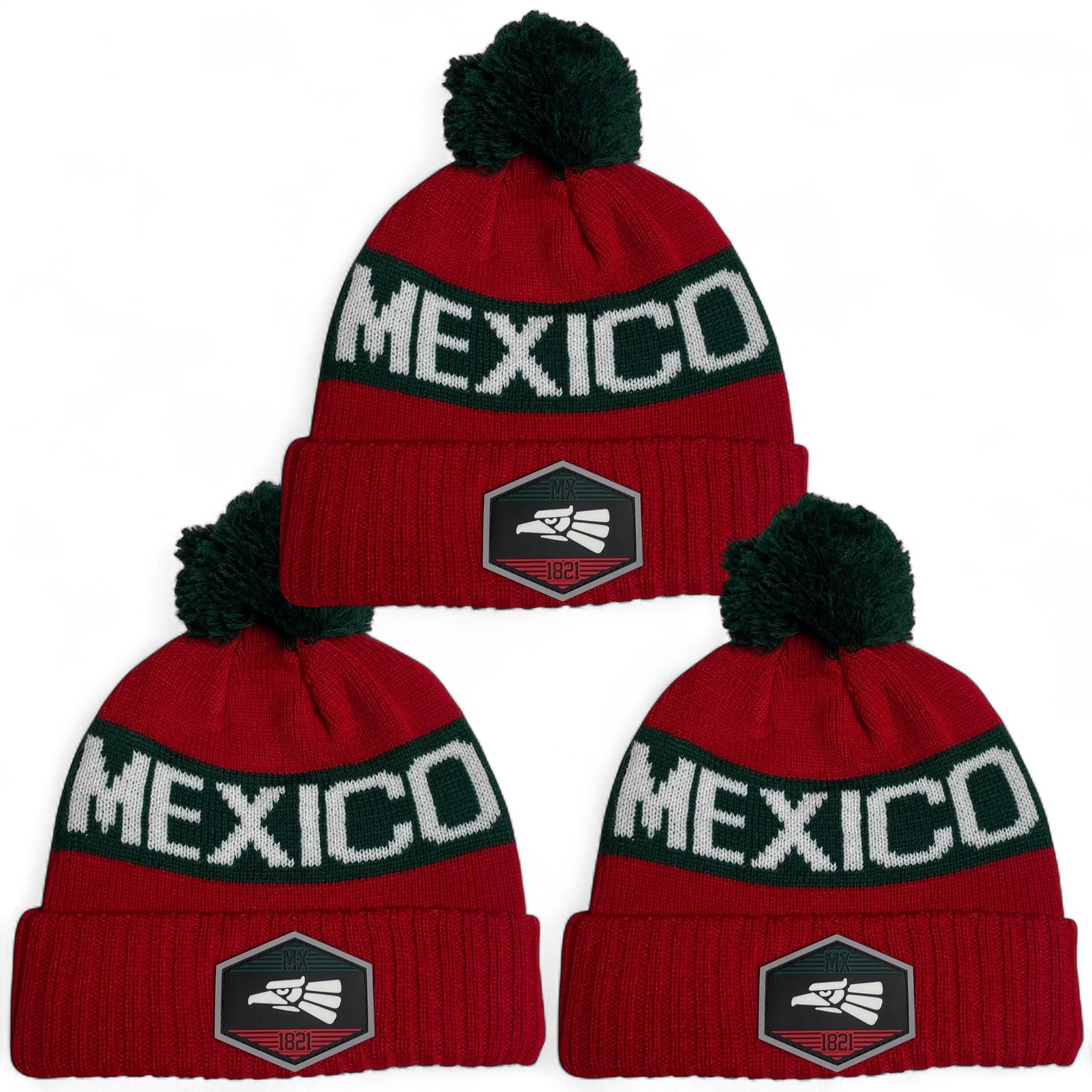 Hecho en Mexico Pom Beanie – PVC Eagle Patch Winter Hat