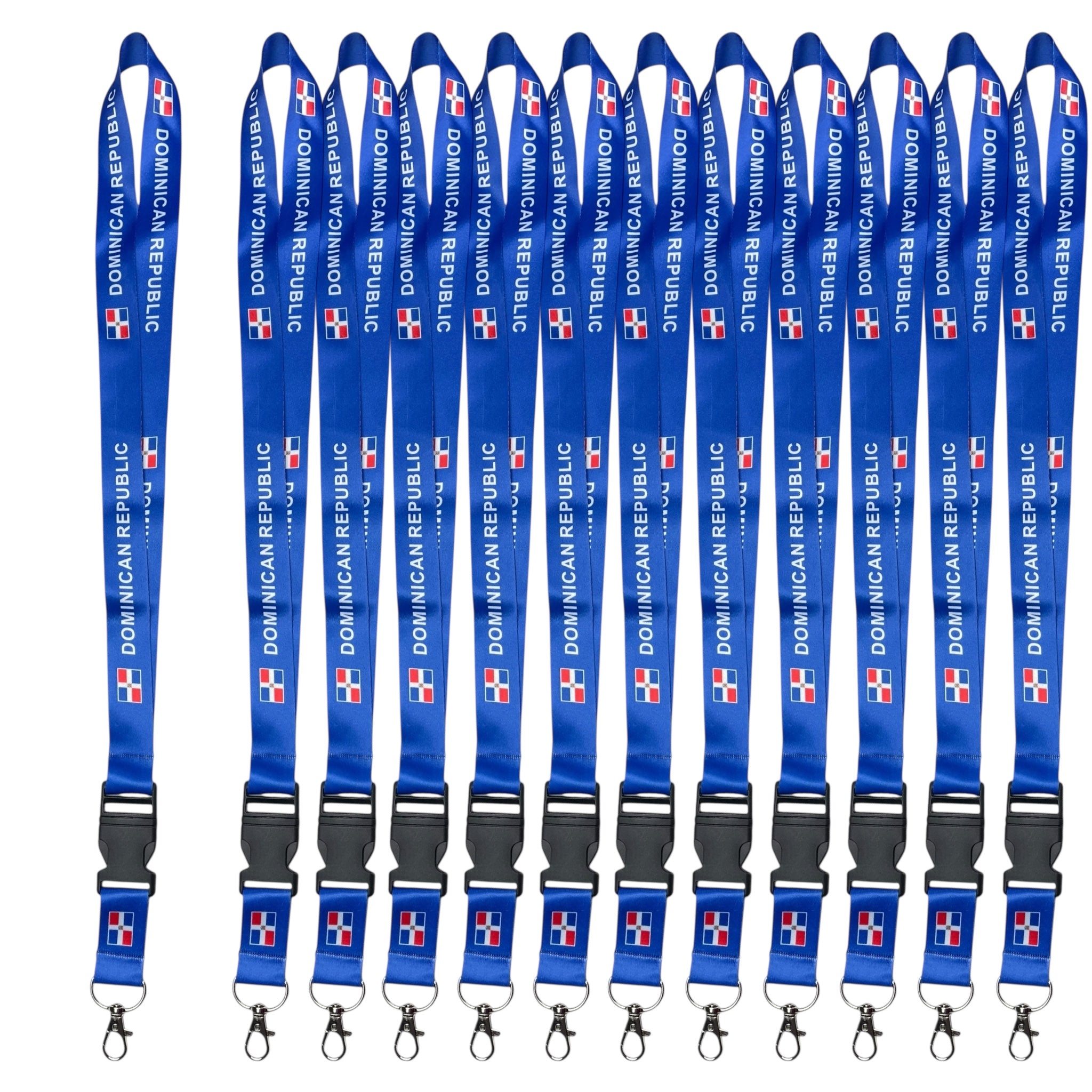 12 Lanyards Bandera de República Dominicana al por mayor – Porta Gafete, Llaveros, Broche Desmontable