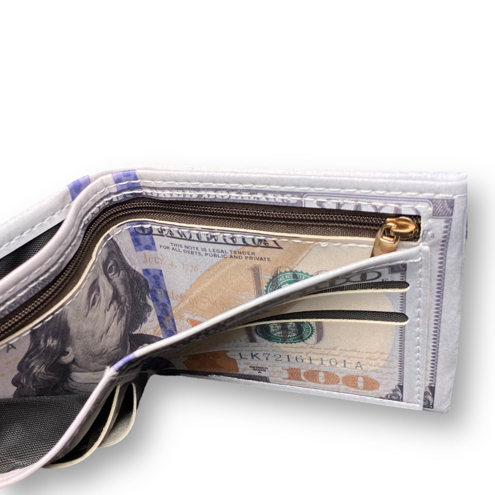 Experience luxury and novelty with our Mens 100 Bill Printed Bifold Novelty Wallet! This wallet features a unique design of real 100 dollar bill prints, making it a statement piece. Keep your cash and cards organized in style. Perfect for those who appreciate both fashion and function!