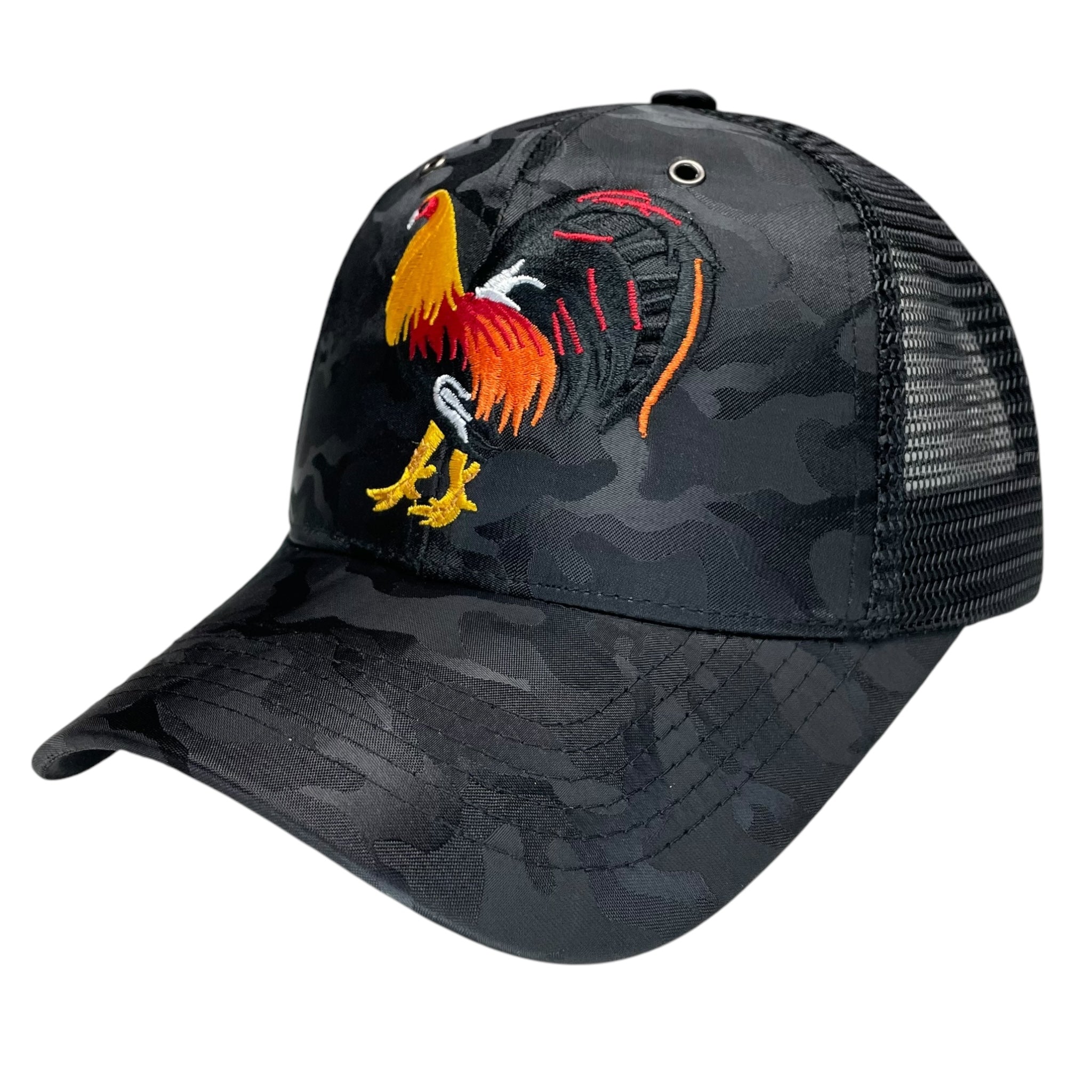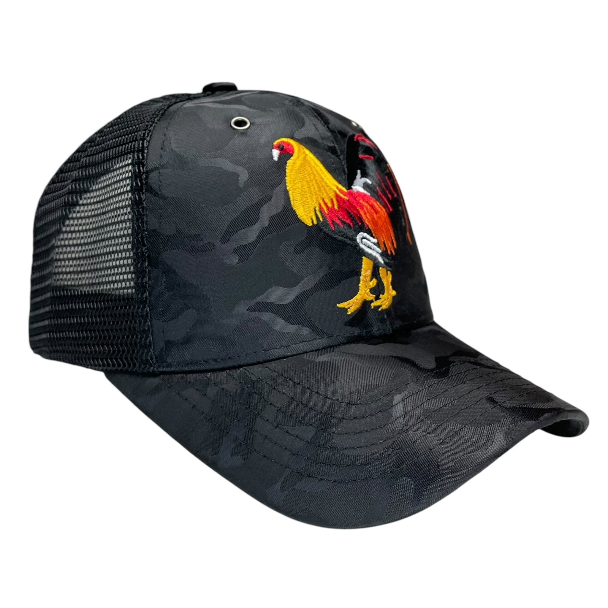 Rooster Fight Embroidered Snapback Trucker Hat Camo Rodeo Style
