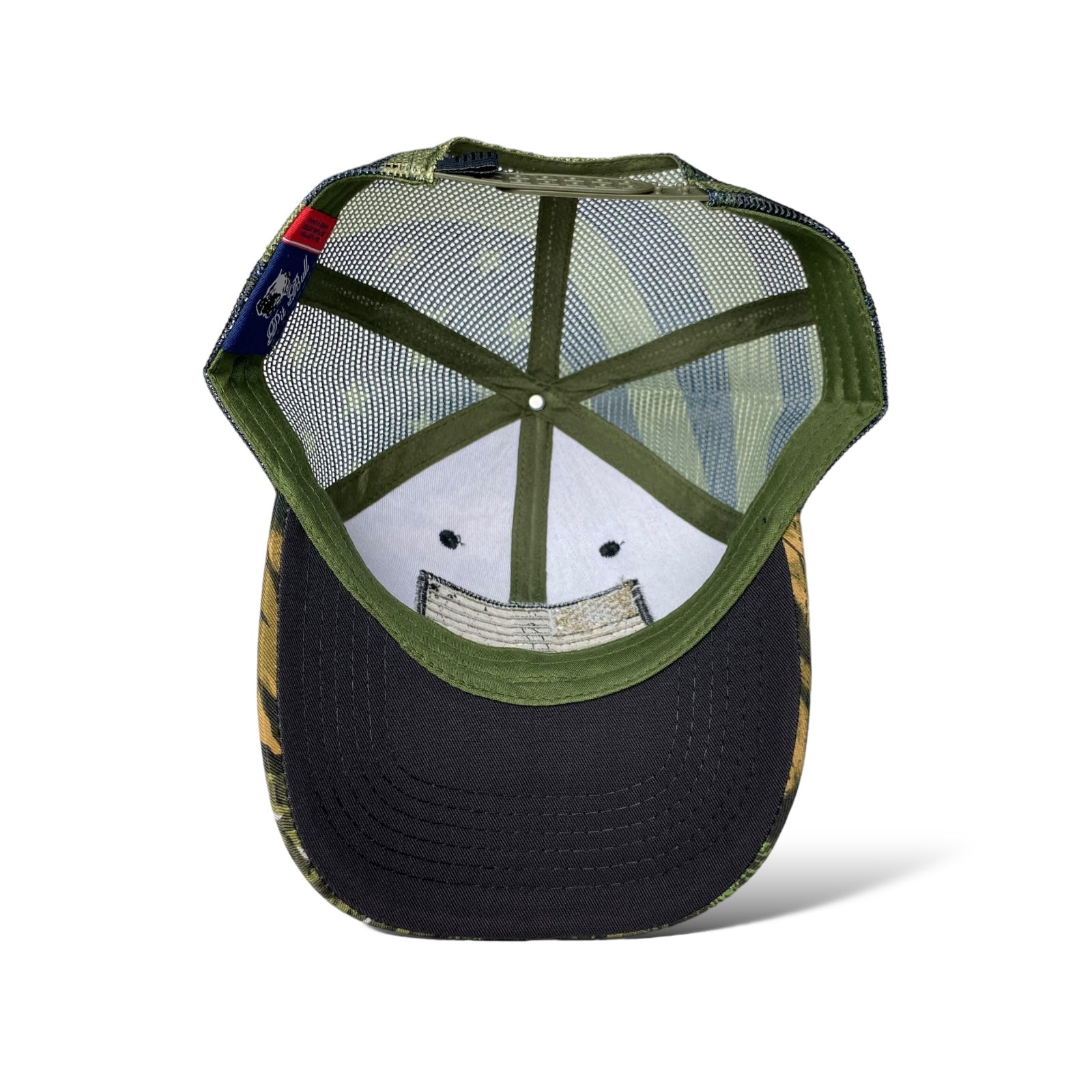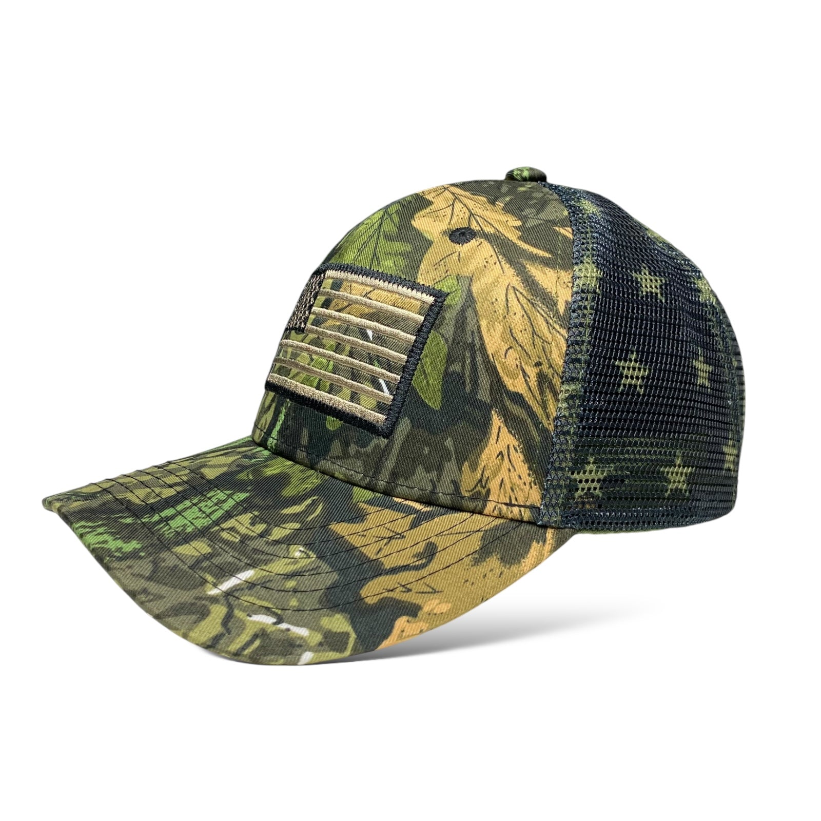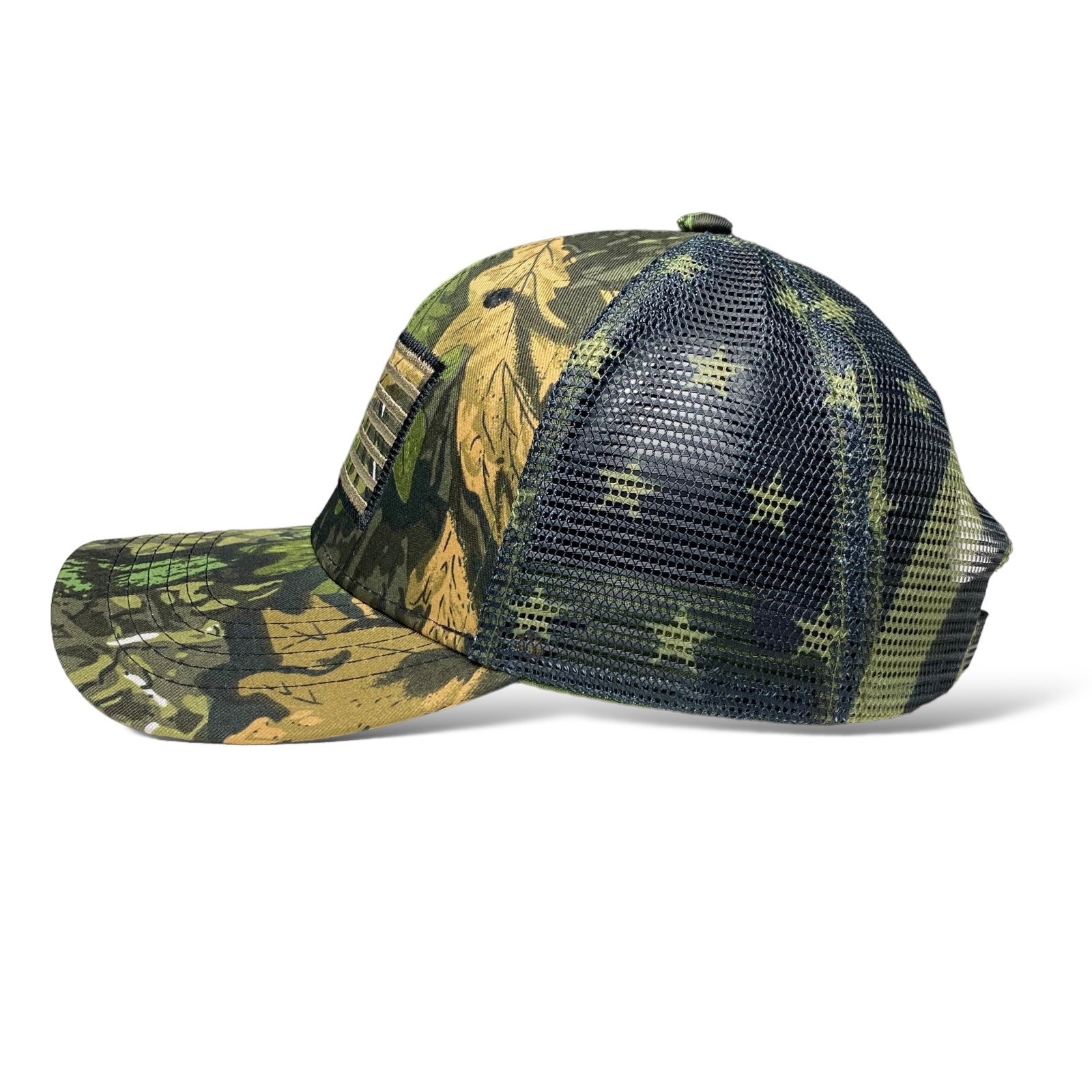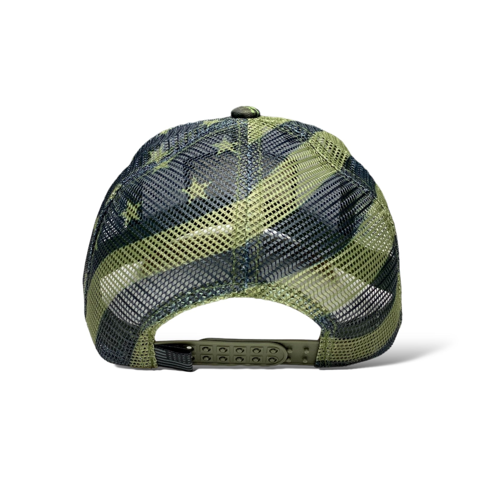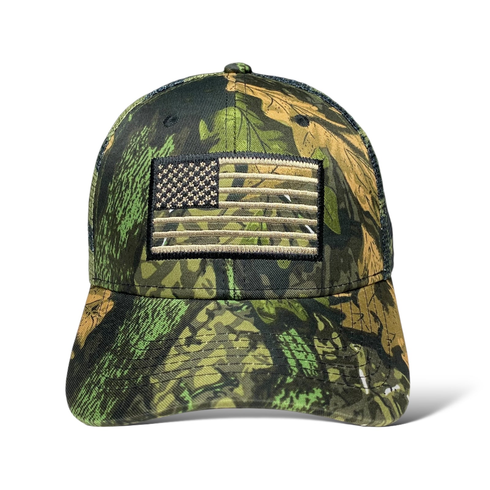 Patriotic and rugged, this camo snapback cap features an embroidered USA flag. Perfect for outdoor adventures and American pride.