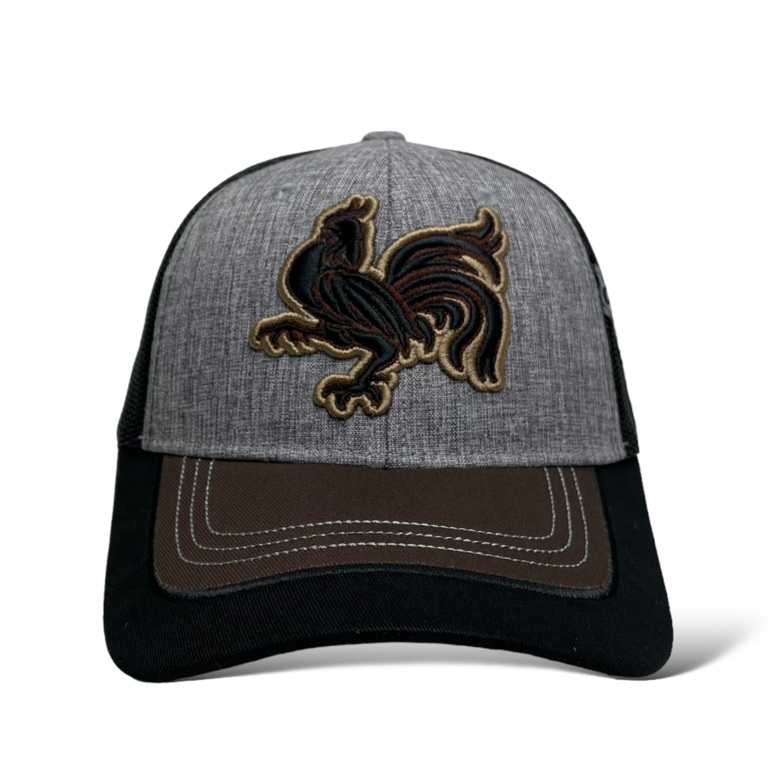 Men’s gray snapback baseball cap with bold rooster (gallo) embroidery, curved brim, and adjustable fit. Perfect for Western and rodeo lovers.