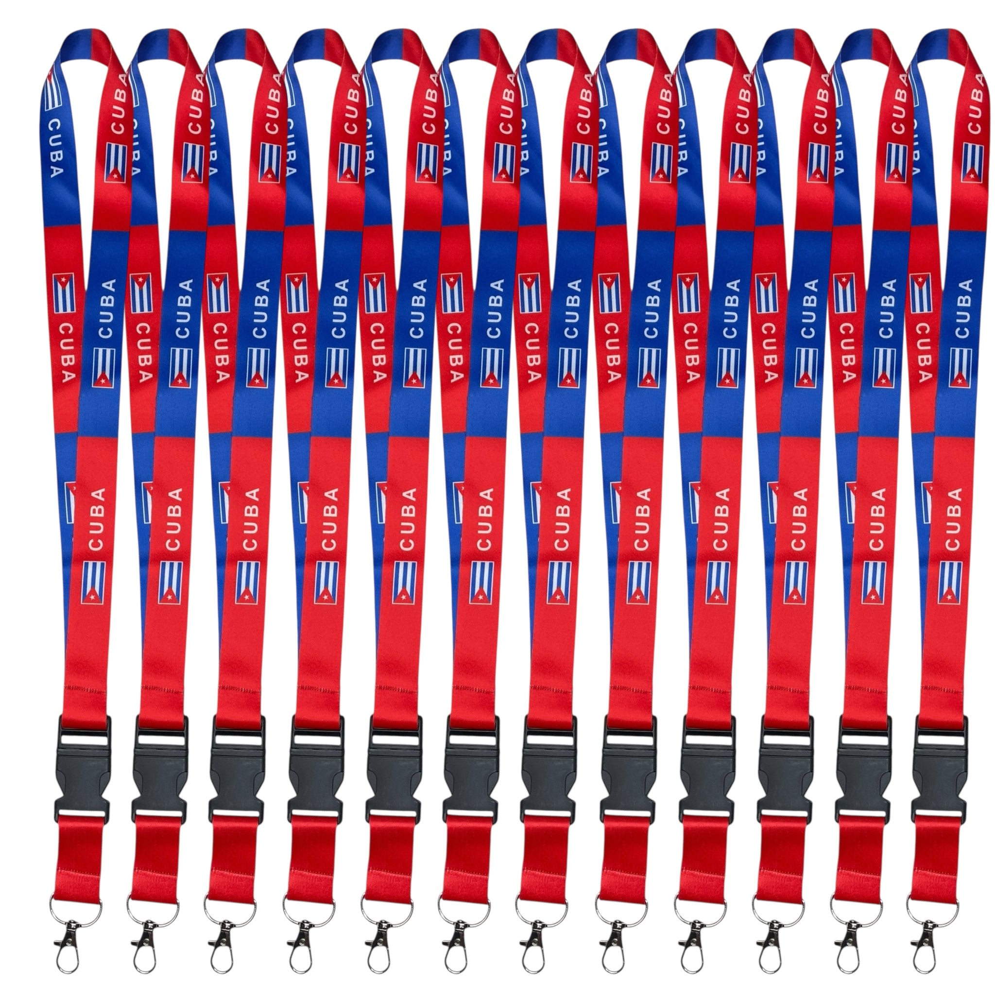 Wholesale 12-Pack Cuba Flag Lanyard, ID Holder, Detachable Buckle