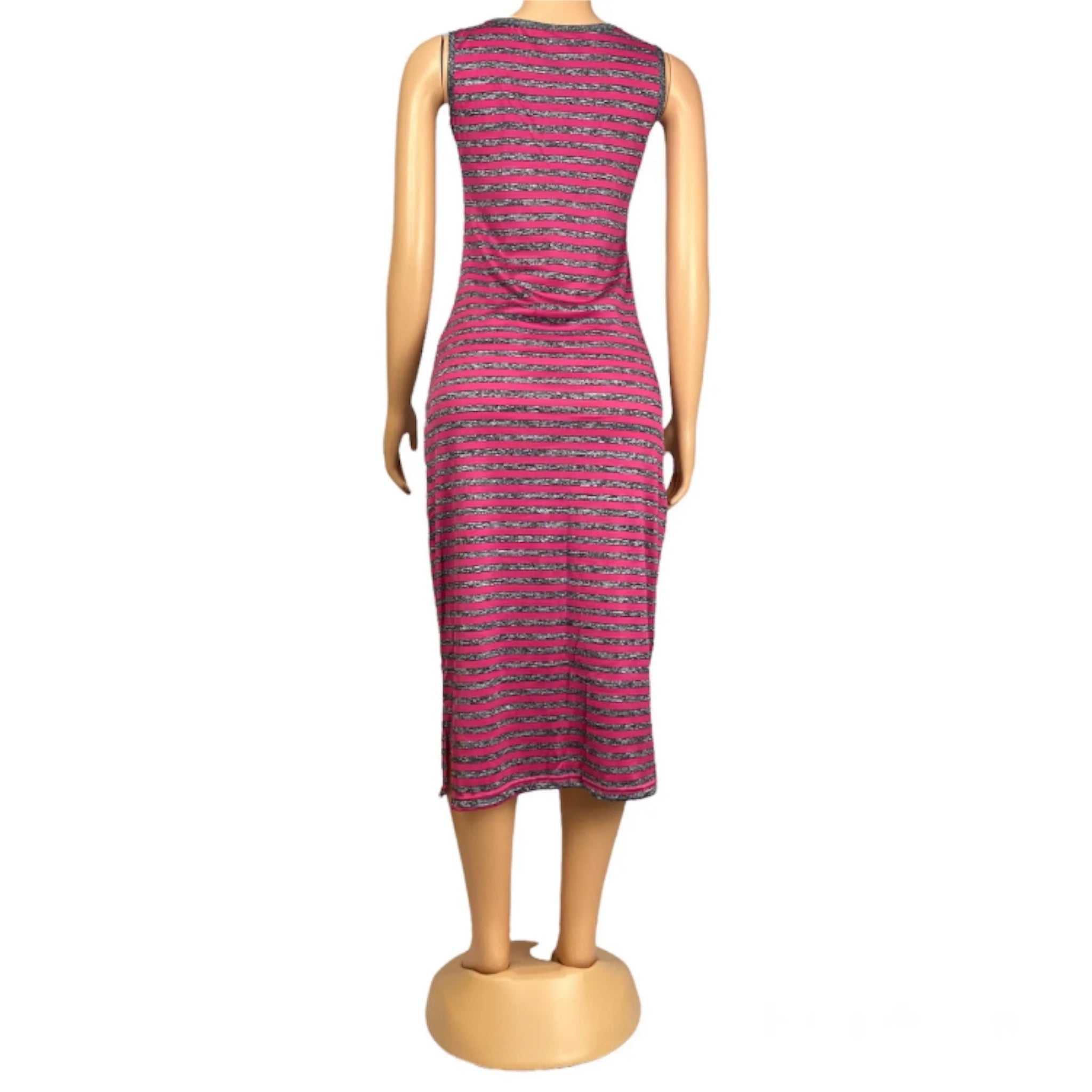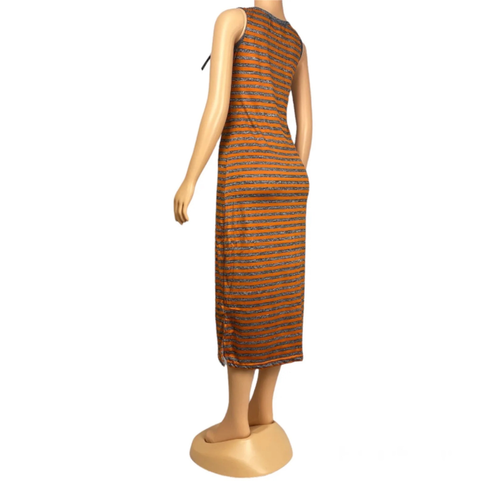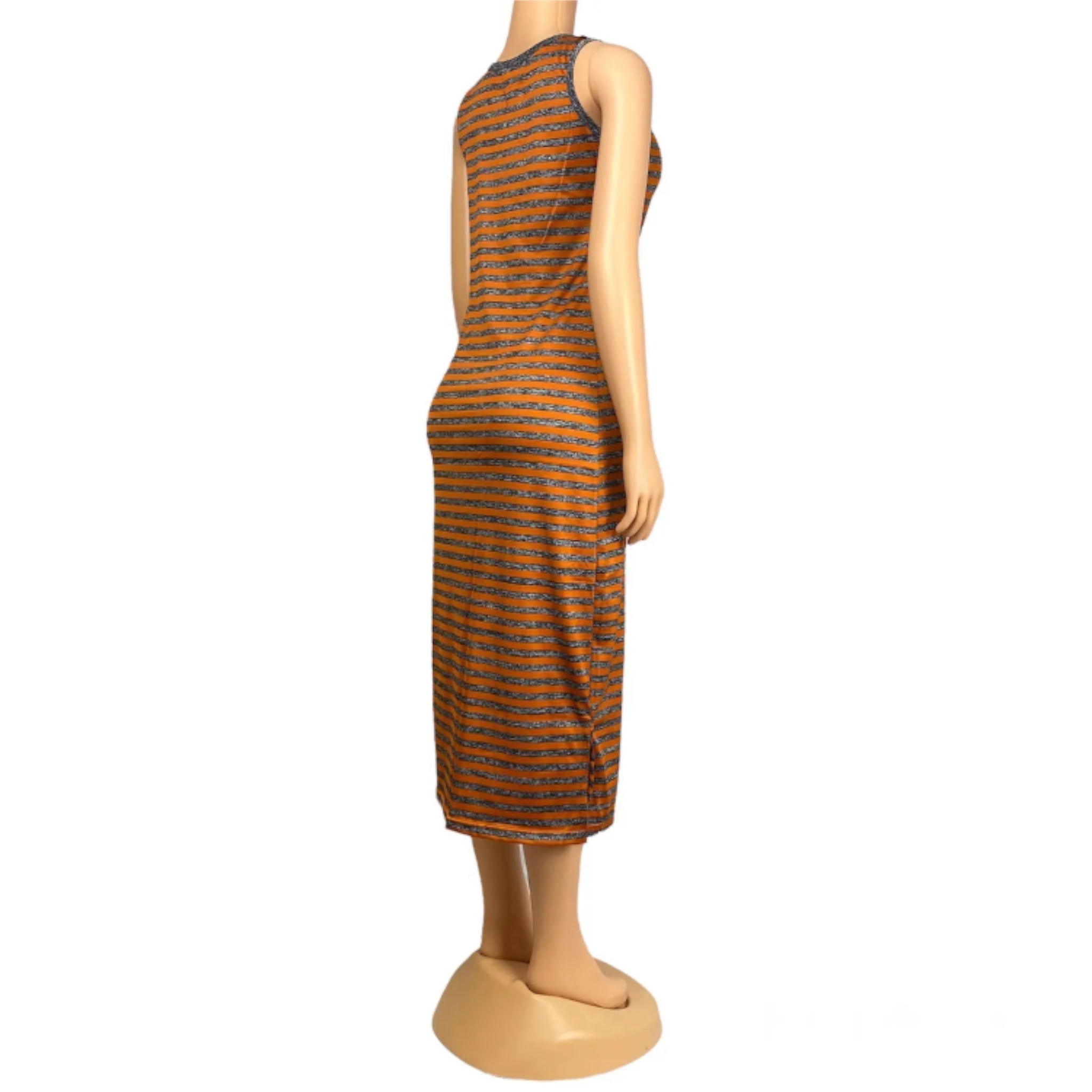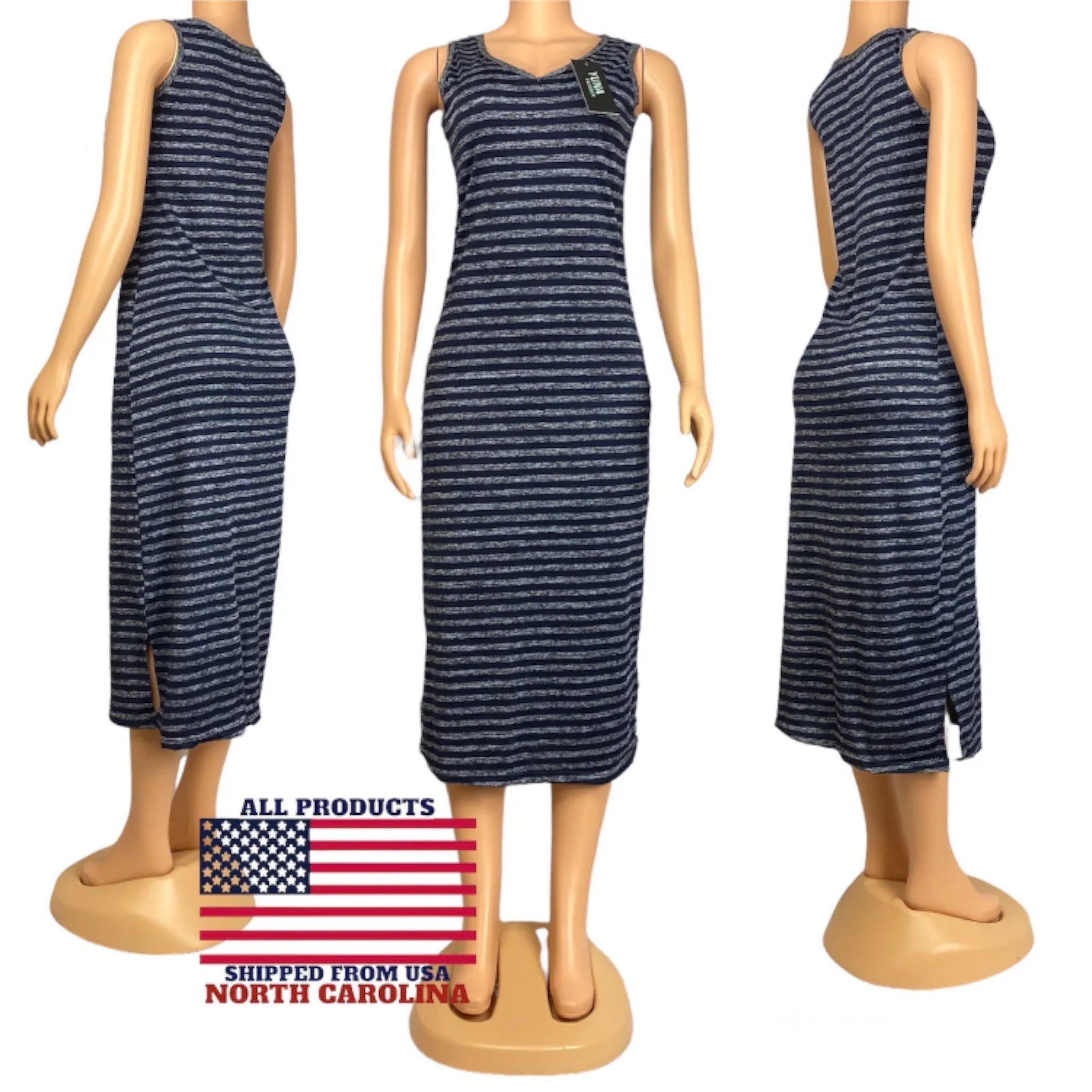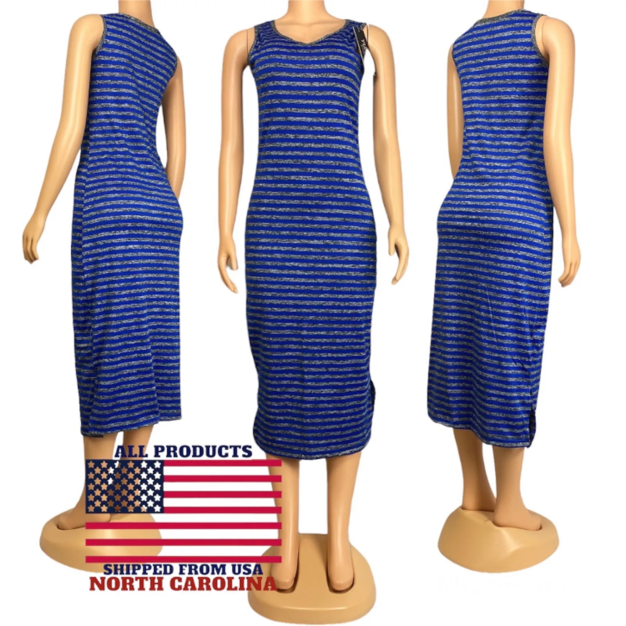 Stay cool in this Women's Summer Sleeveless Striped Casual Maxi Beach Sundress. Made from lightweight fabric, the sleeveless design features a striped pattern for a stylish look perfect for any sunny beach day.